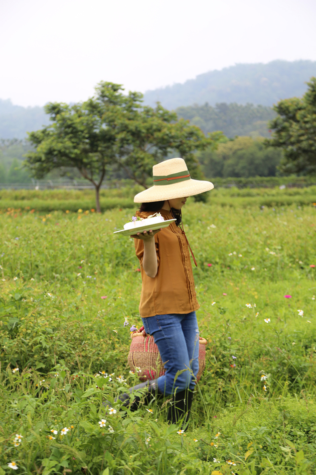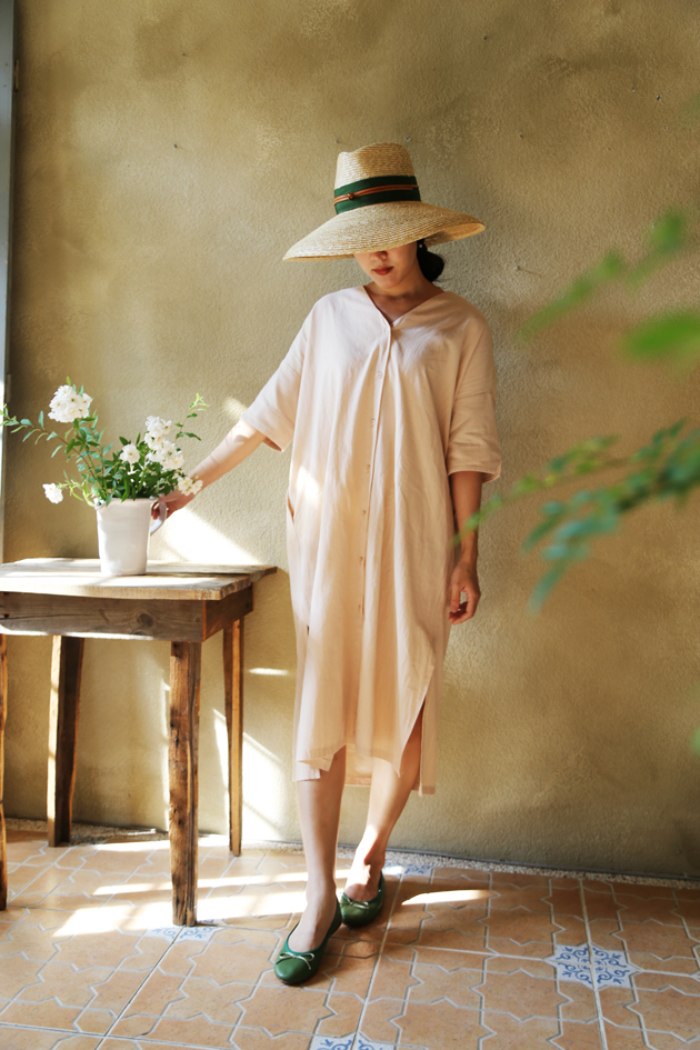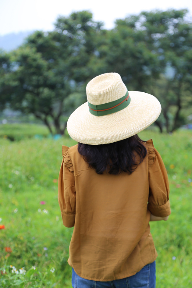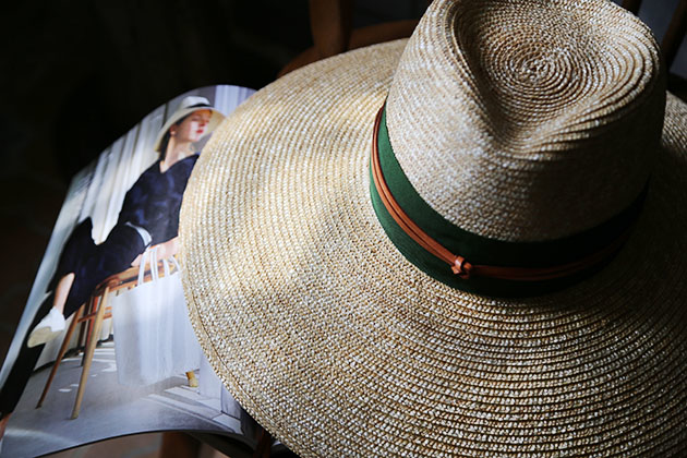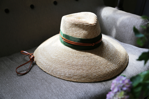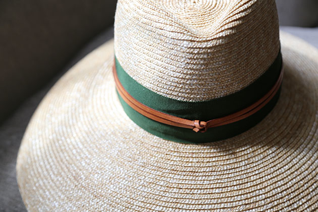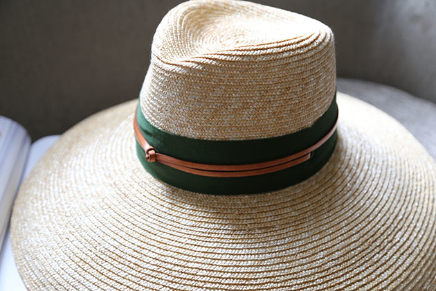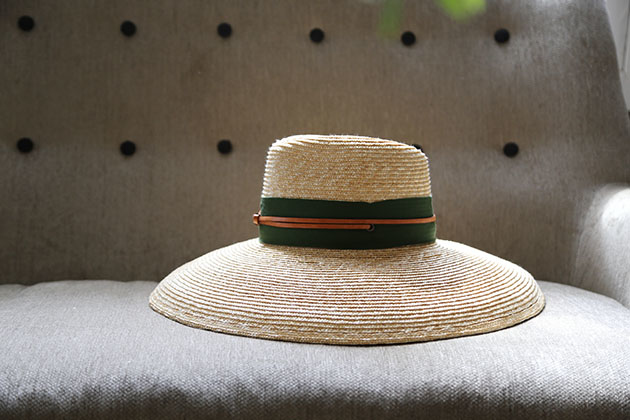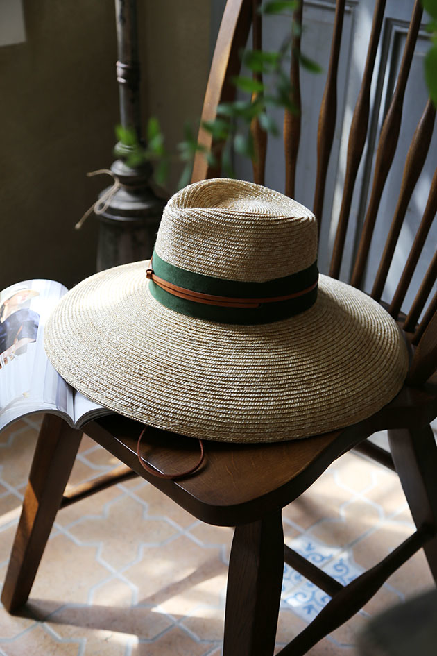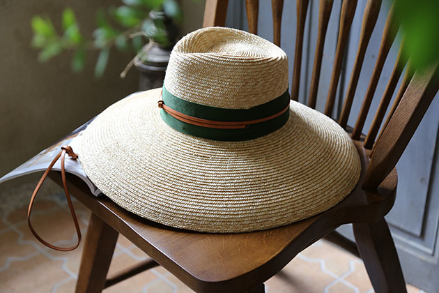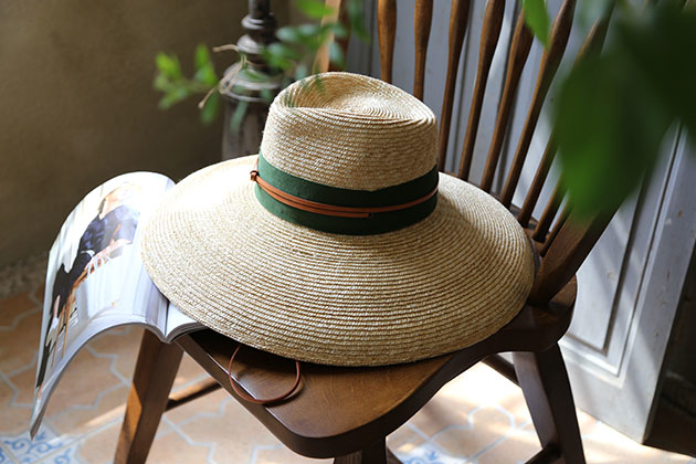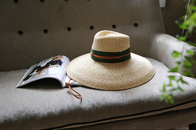 以小麥桿編織而成的草帽 ,一層層手工縫製而成