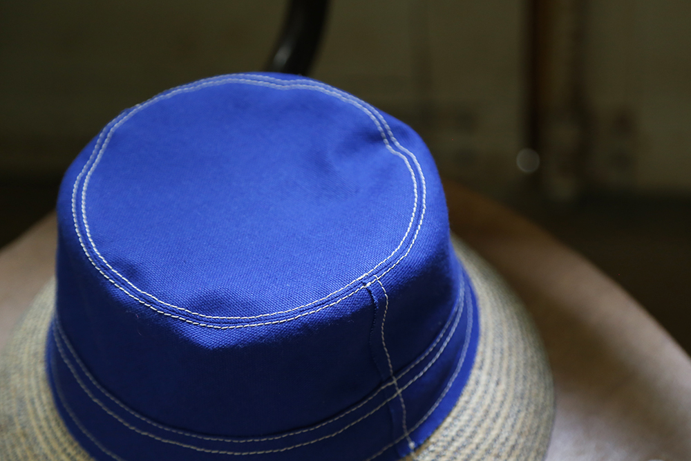 帽冠由棉質帆布製成,隨興不修邊,並縫製對比色的線條