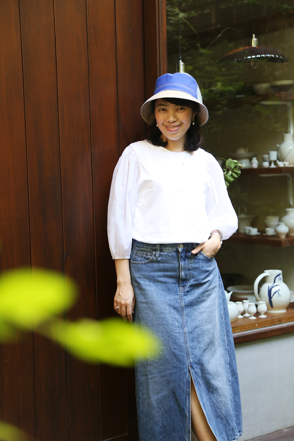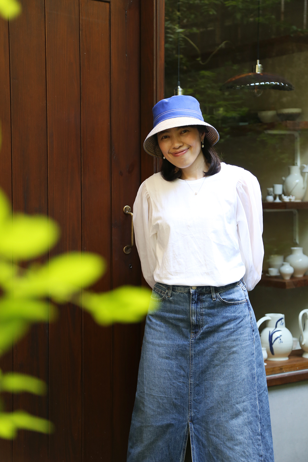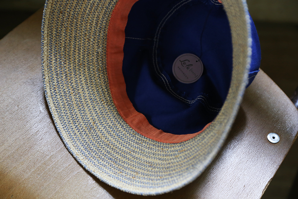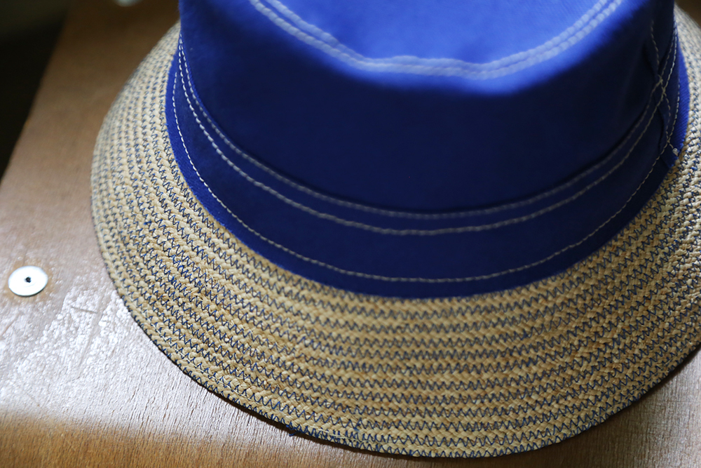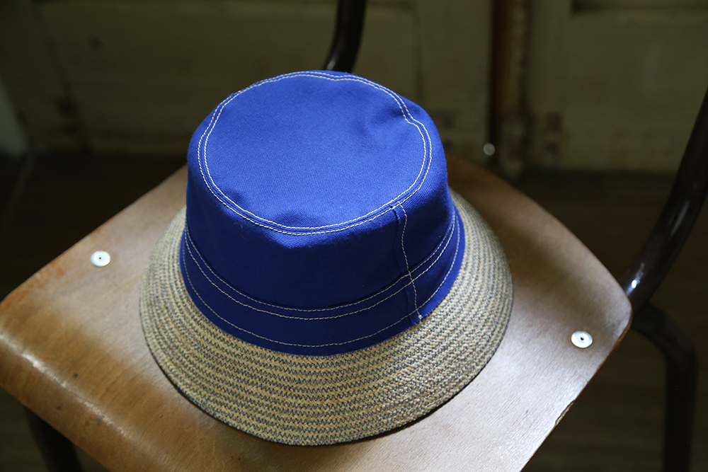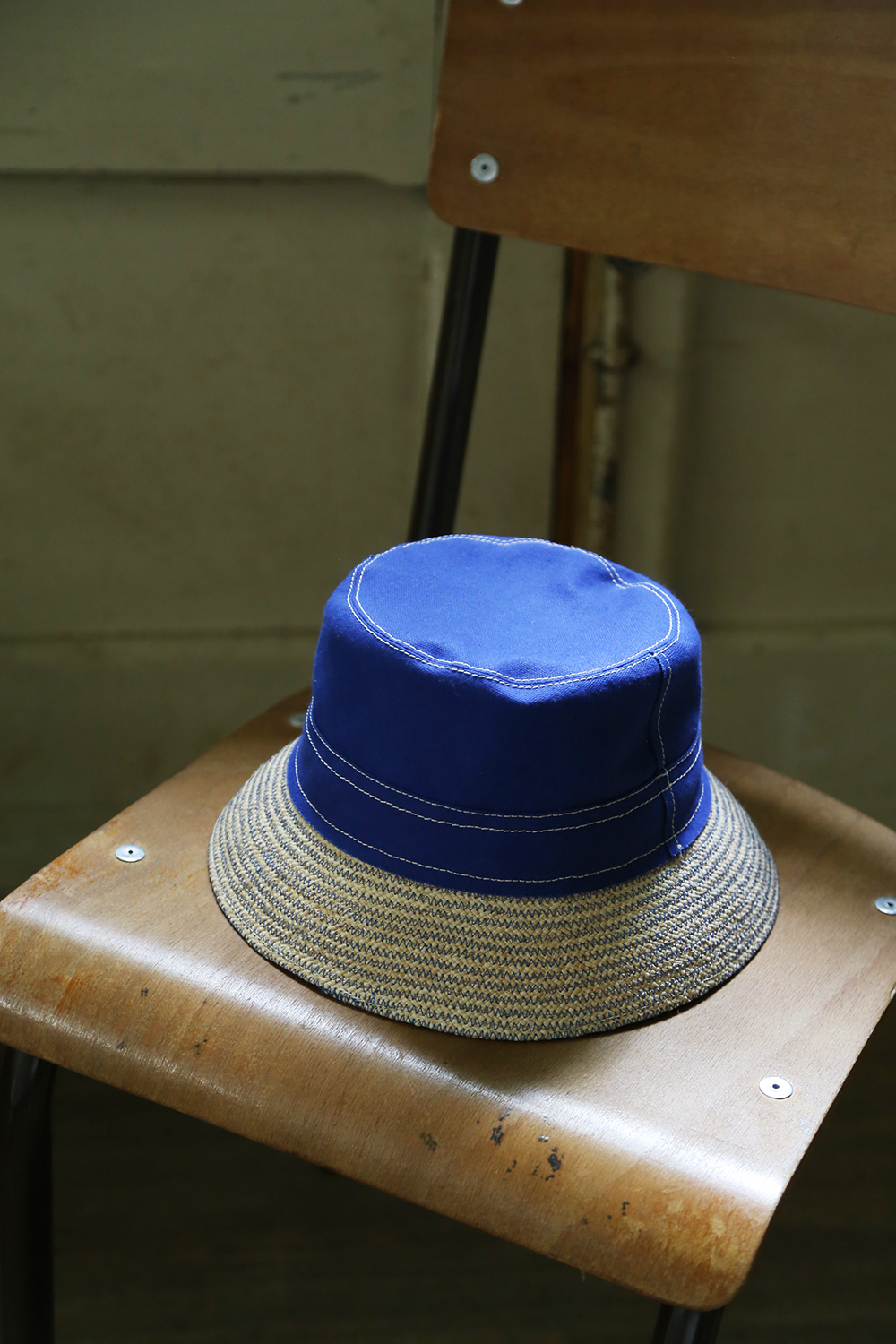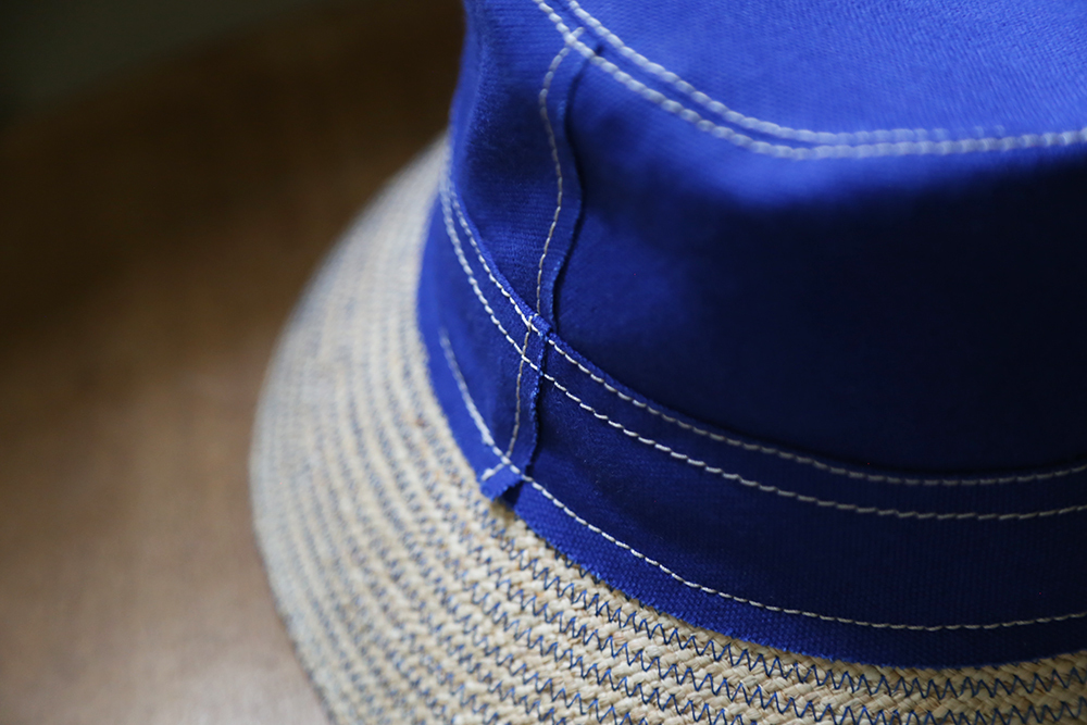 經典的桶帽,使用帆布+拉菲草混合縫製