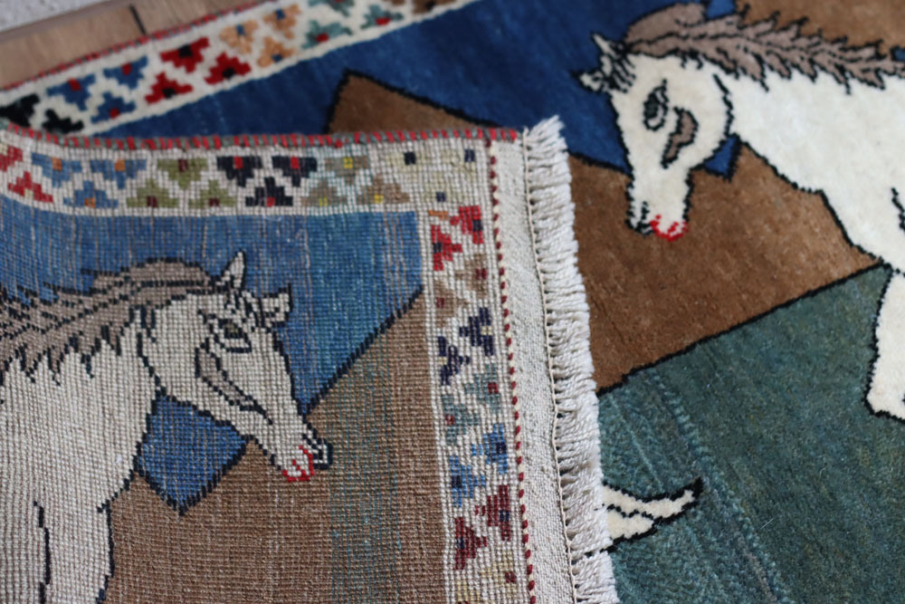 以羊毛和蠶絲手紡成線的地毯,是非常耐用的,羊毛含有天然脂肪,可保暖防止汙垢、霉變和磨損,也是遊牧民族最常編織使用的材質
