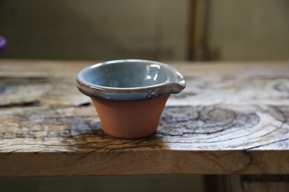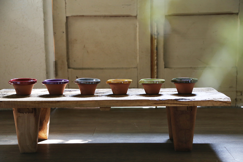 因是手工上釉,釉色不均、釉色氣孔、陶面厚薄不一、形狀不工整,以及因為燒製而產生的自然冰裂釉