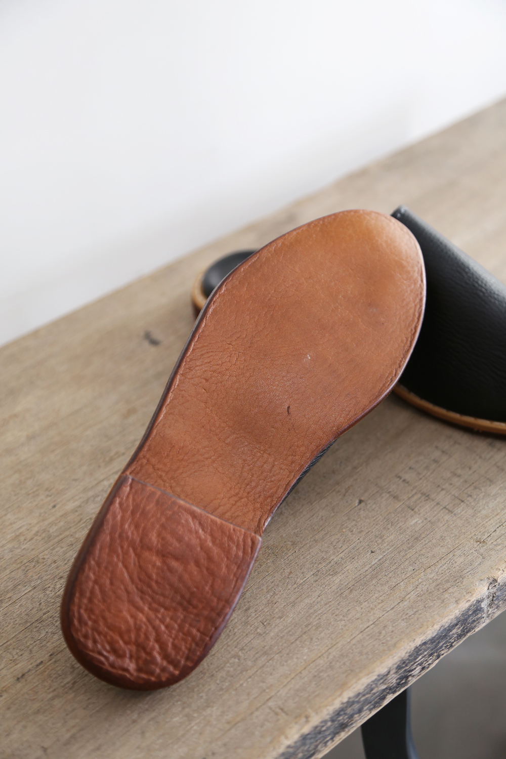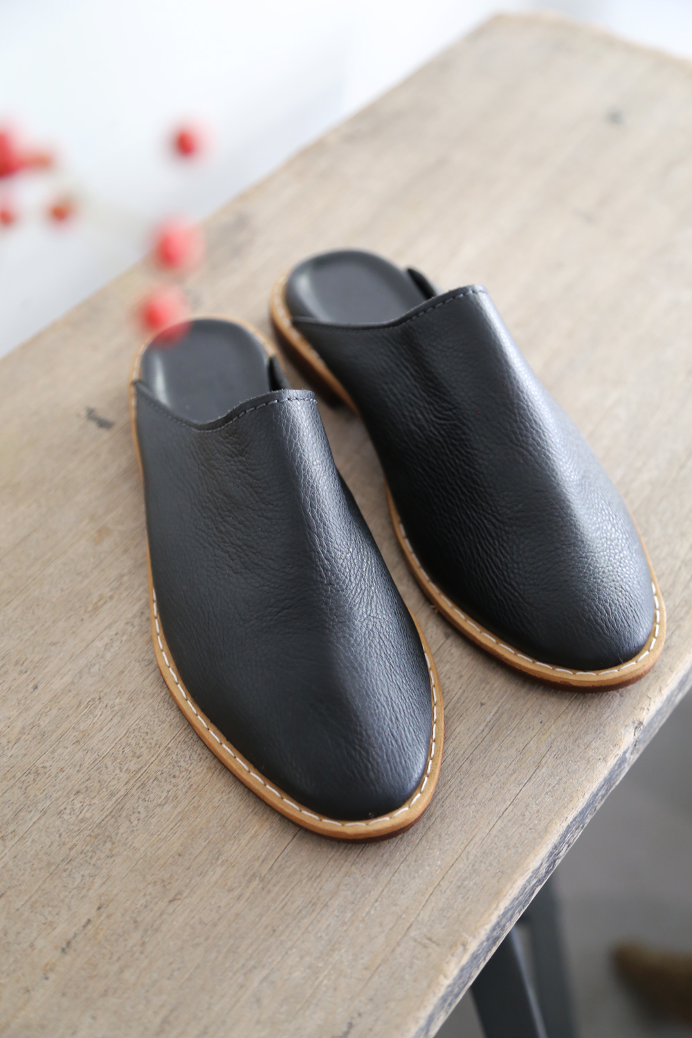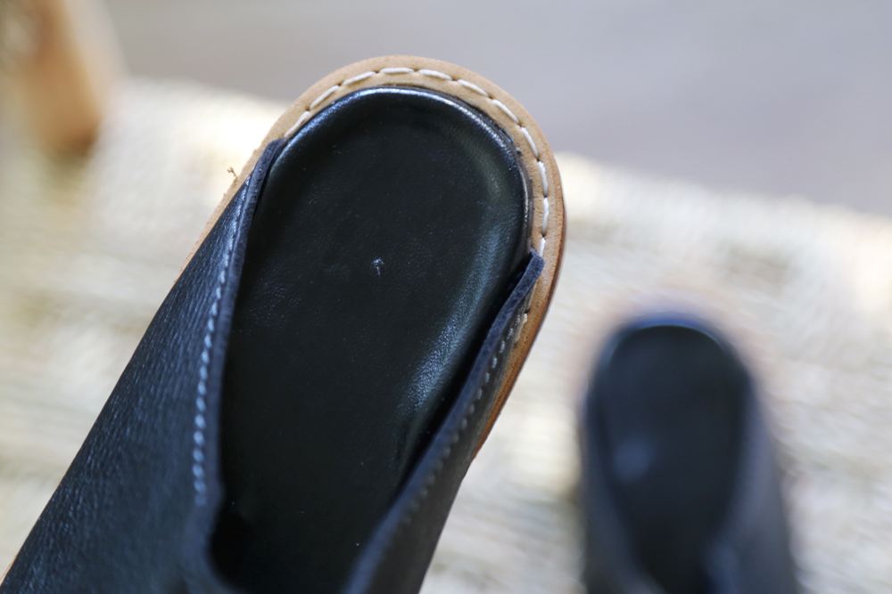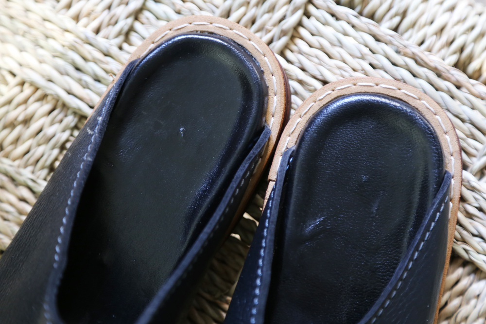 使用傳統染製的穆勒鞋,新鞋皮革多少會有天然皮革的氣味,建議收到時可放置於通風處數天,氣味會慢慢散去,有明顯改善