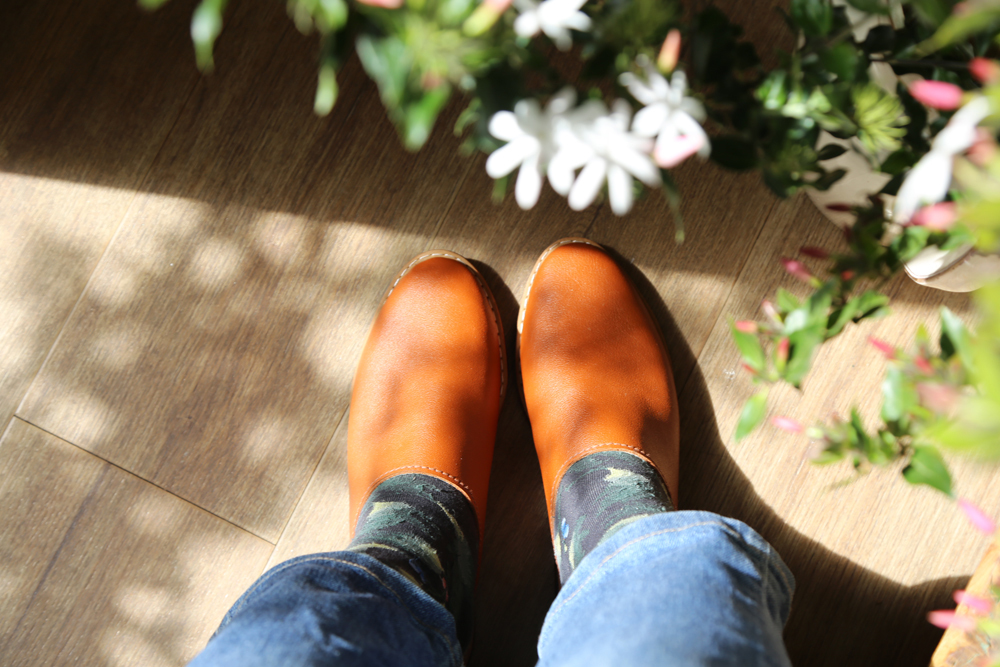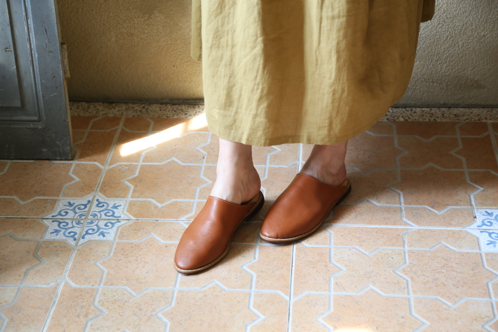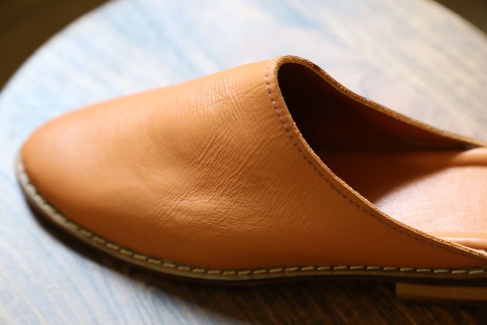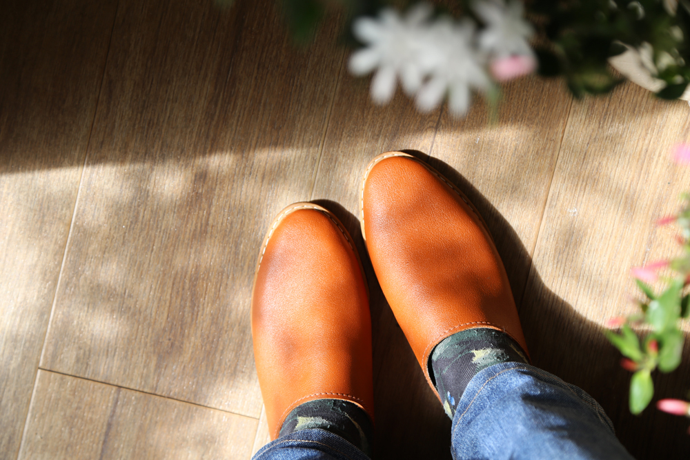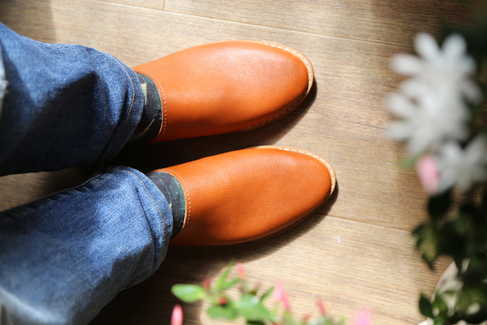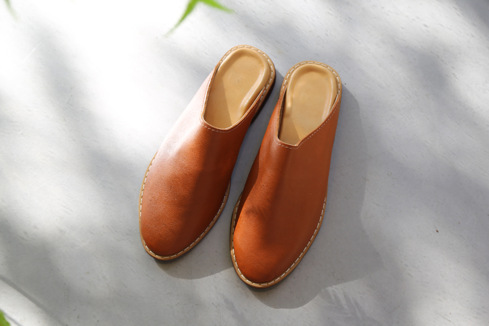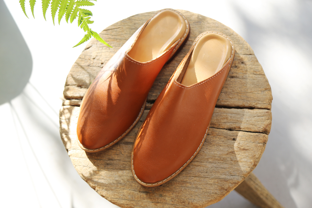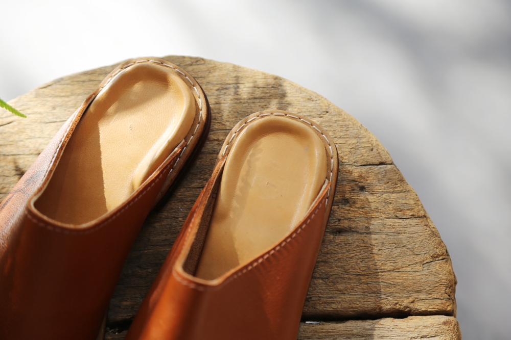 使用傳統染製的穆勒鞋,新鞋皮革多少會有天然皮革的氣味,建議收到時可放置於通風處數天,氣味會慢慢散去,有明顯改善
