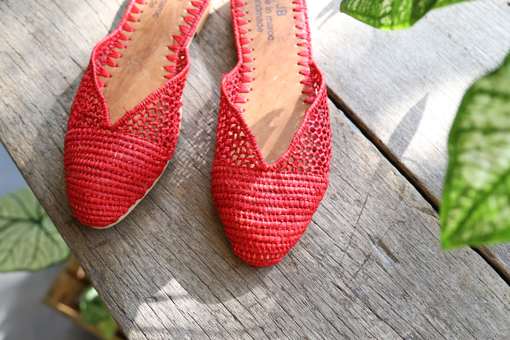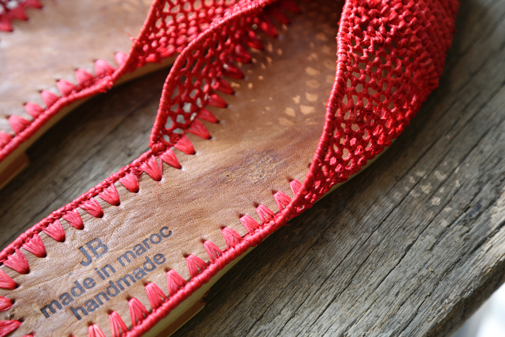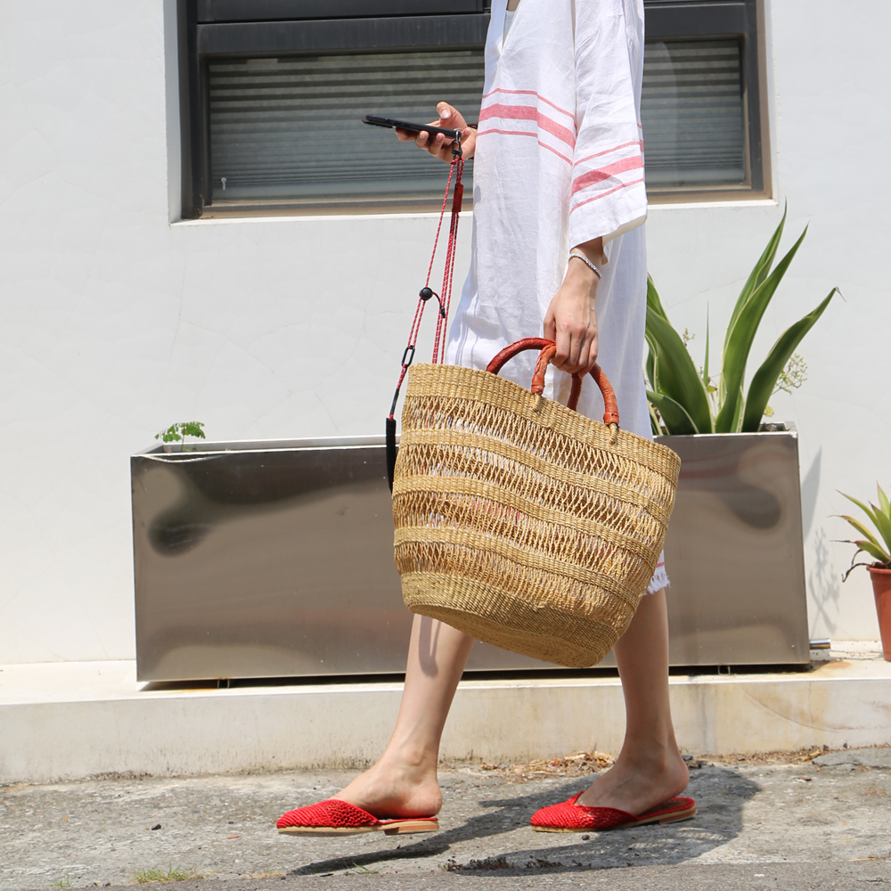 細緻的拉菲草手工編織, 搭配天然皮革及防滑膠底