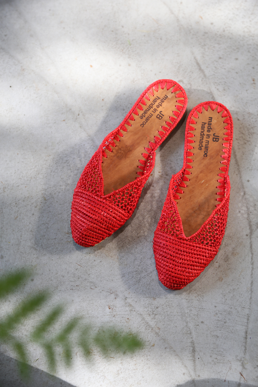 來自摩洛哥的手工編織拉菲草牛皮穆勒鞋/涼鞋