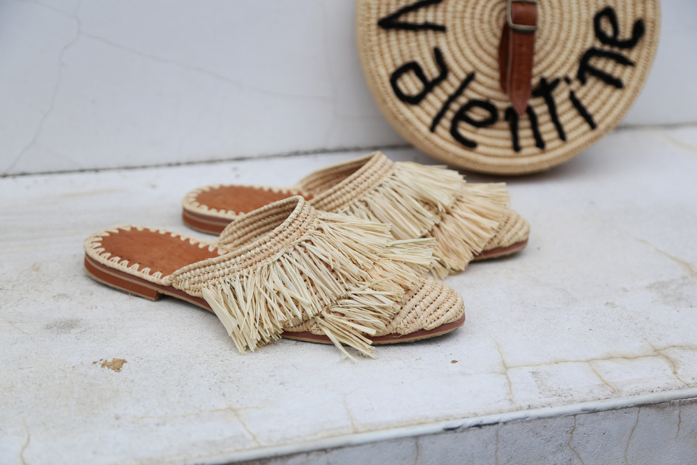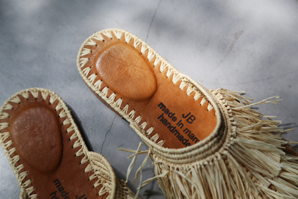 來自摩洛哥的手工編織拉菲草牛皮穆勒鞋/涼鞋