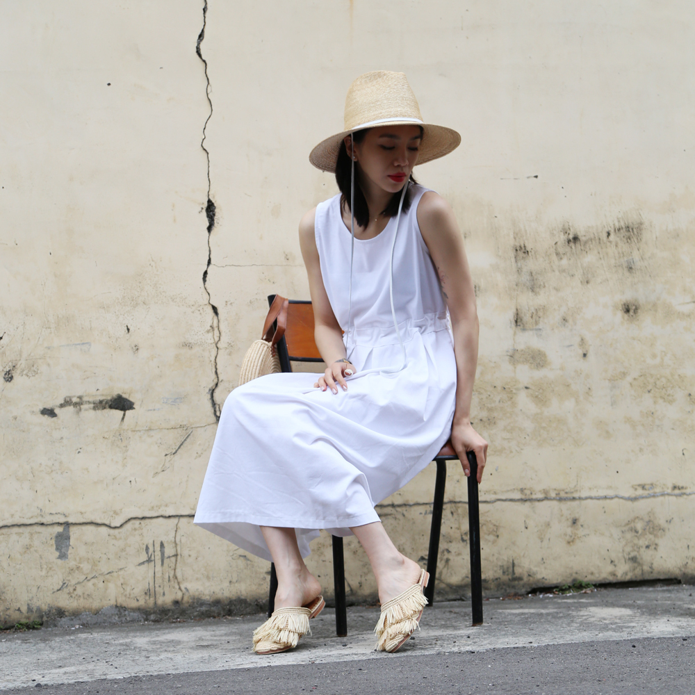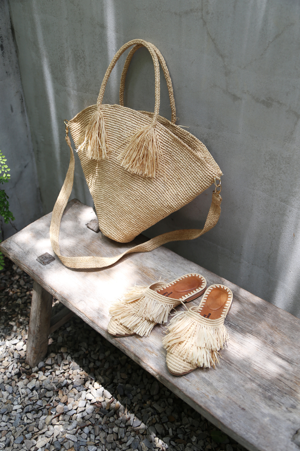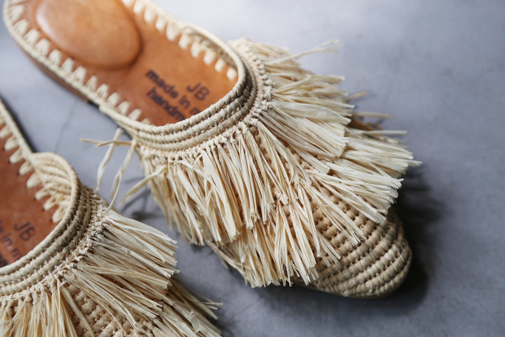 細緻的拉菲草手工編織, 搭配天然皮革及防滑膠底
