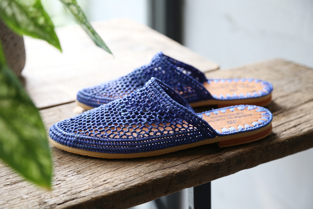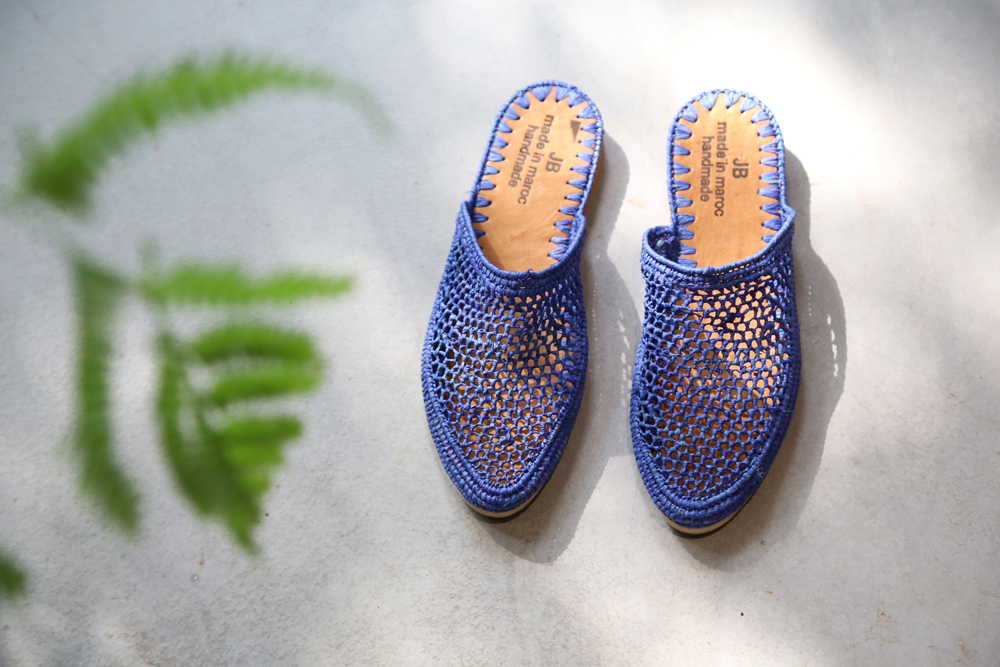來自摩洛哥的手工編織拉菲草牛皮穆勒鞋/涼鞋