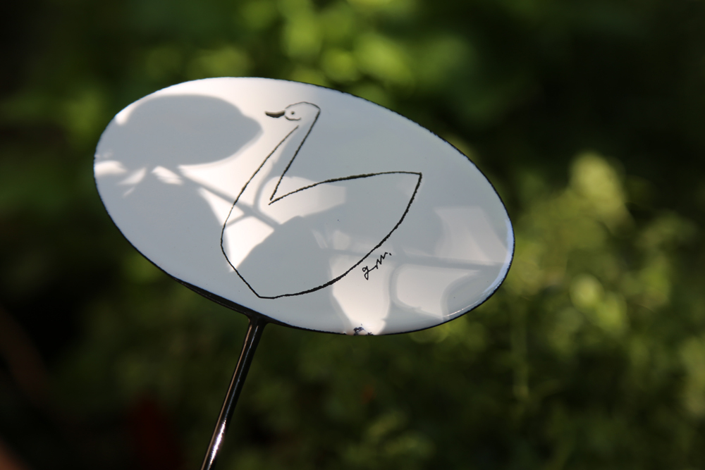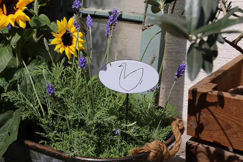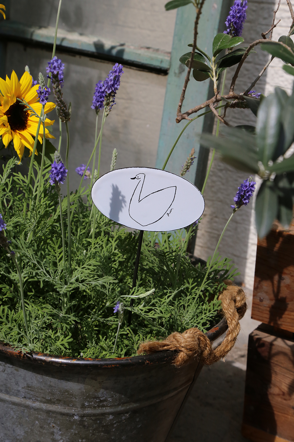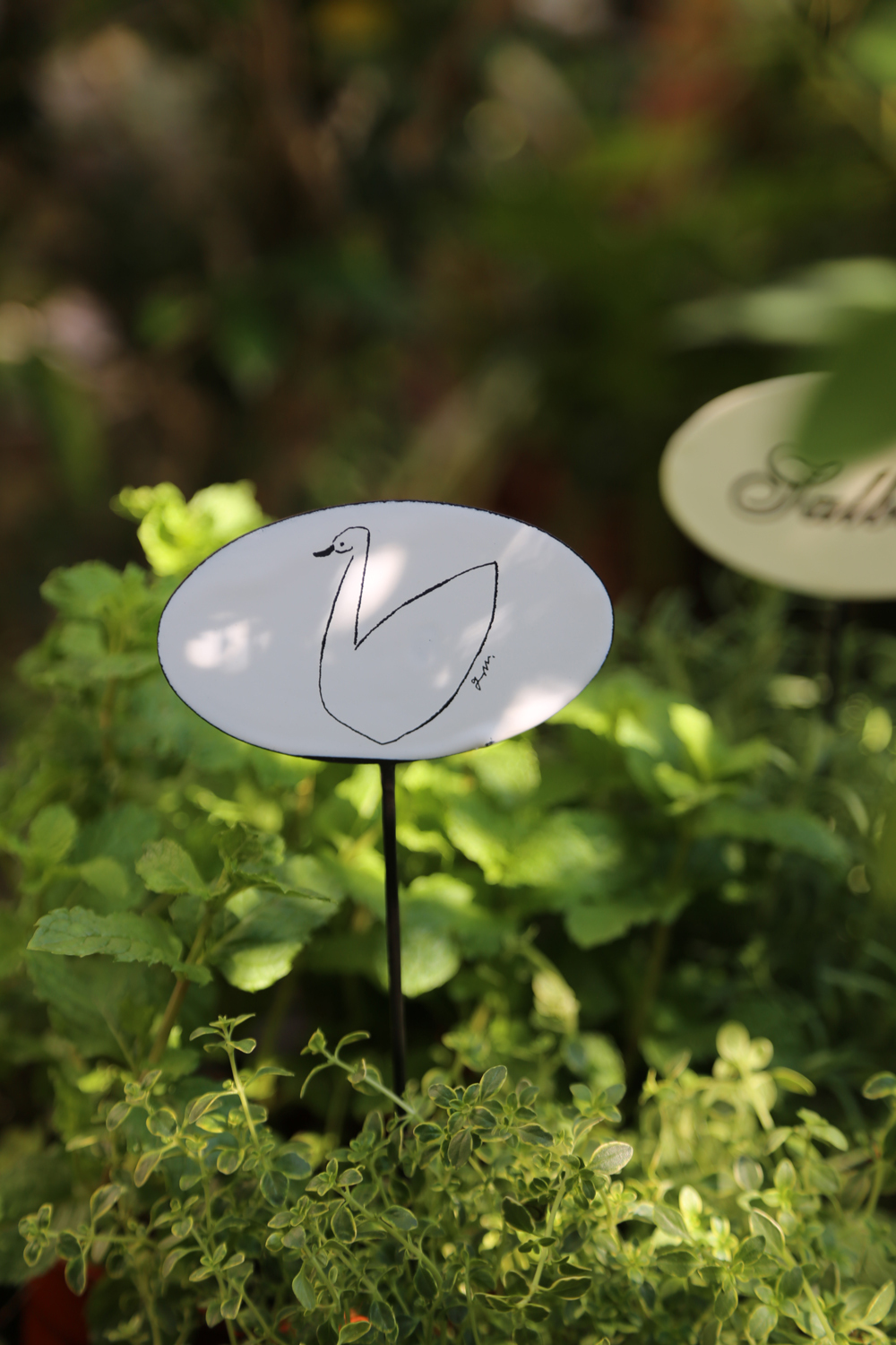 橢圓琺瑯花叉空白面可依需求加上文字 插在花盆 或是花園花團都很有味道