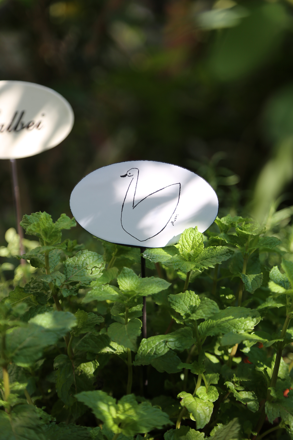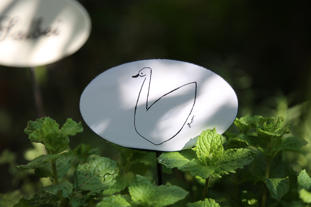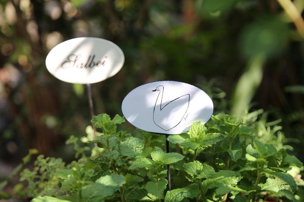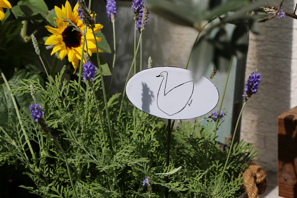橢圓琺瑯花叉空白面可依需求加上文字 插在花盆 或是花園花團都很有味道