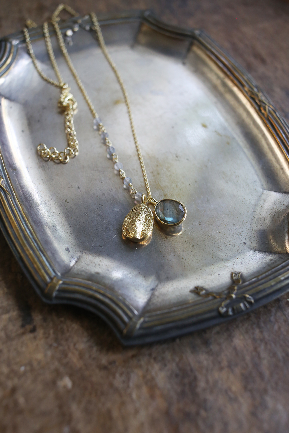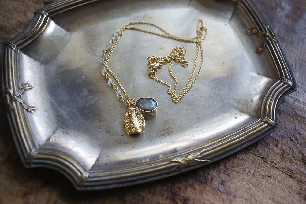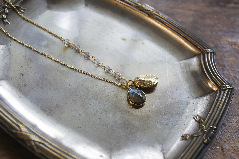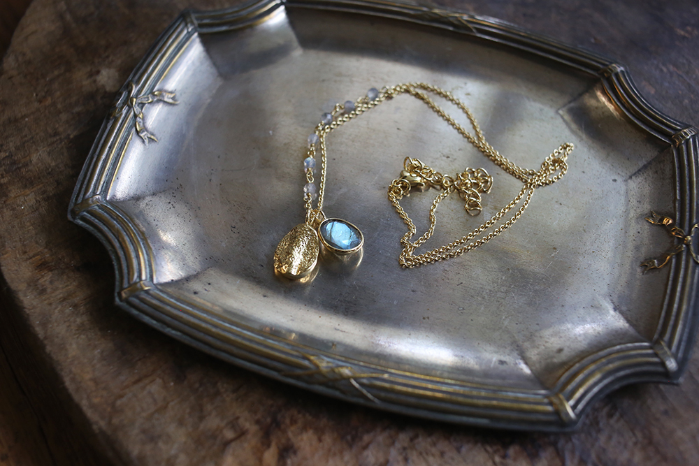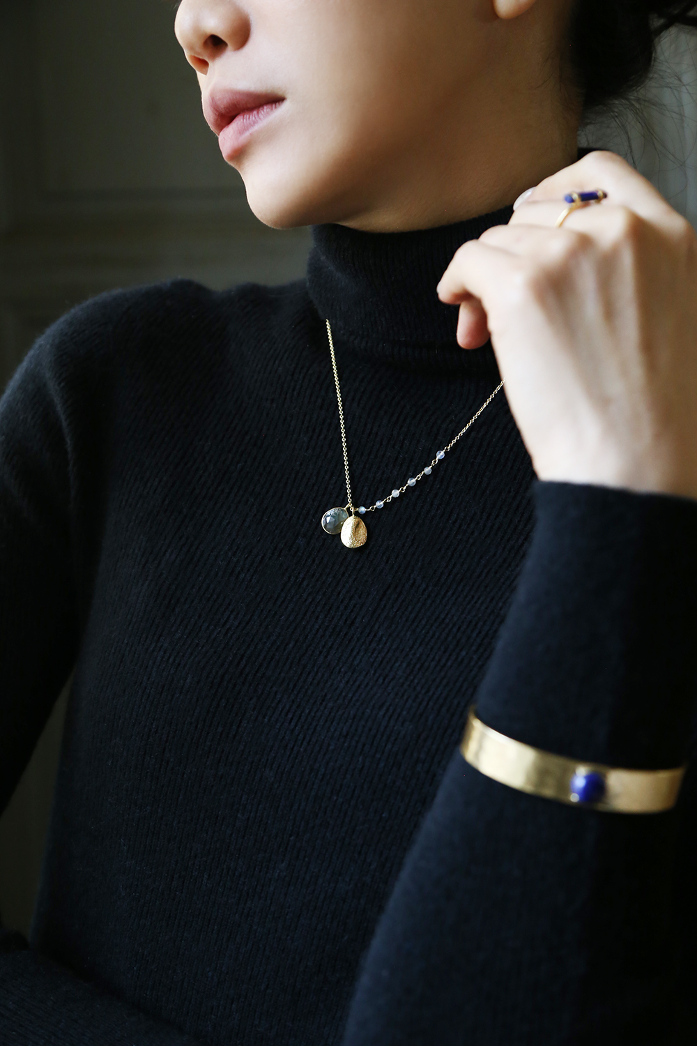 以優雅,感性和細緻,結合古典與現代,以黃銅,天然月光石、青金石、珍珠母貝、翡翠、碧璽、石英、黃玉、瑪瑙、葡萄石、東陵石等寶石的結合