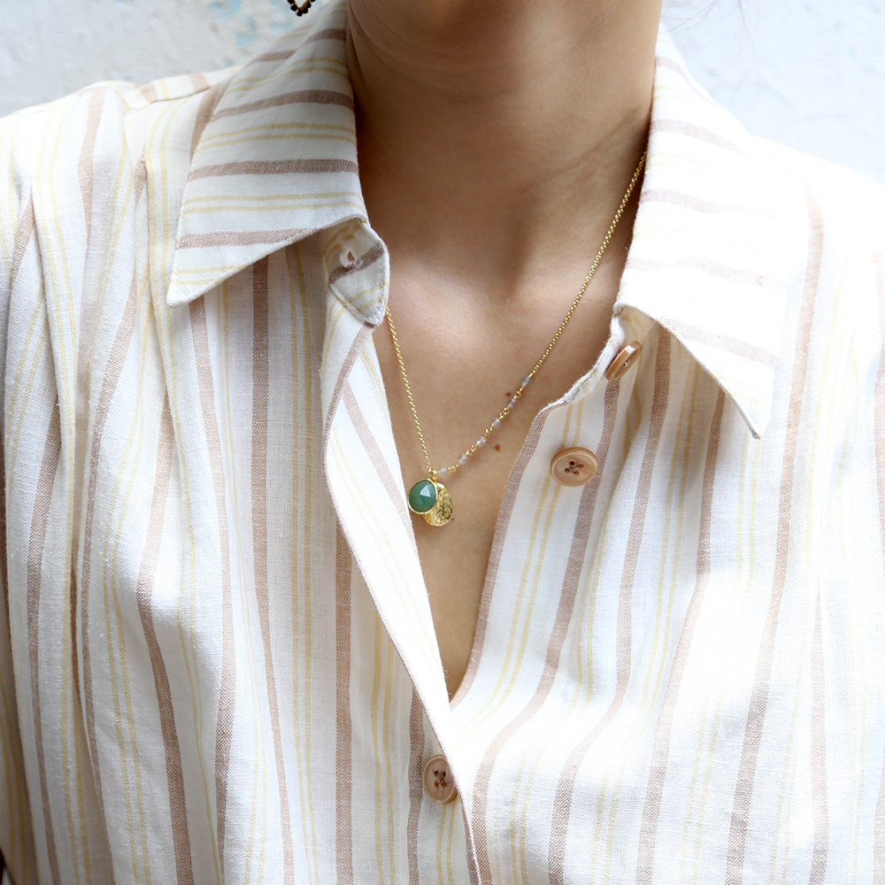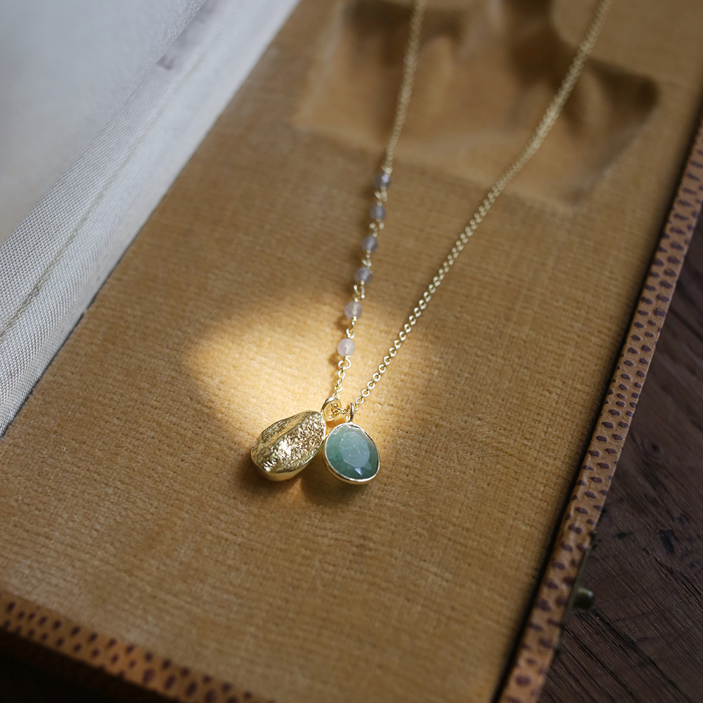 以優雅,感性和細緻,結合古典與現代,以黃銅,天然月光石、青金石、珍珠母貝、翡翠、碧璽、石英、黃玉、瑪瑙、葡萄石、東陵石等寶石的結合