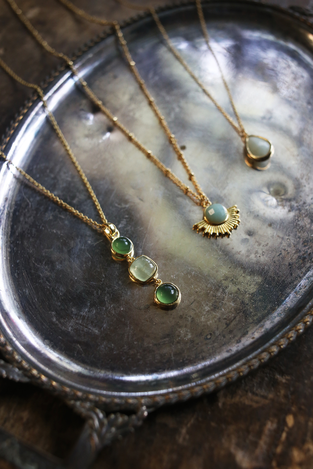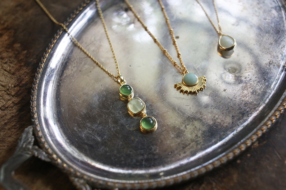 材質:月光石、綠玉髓、葡萄石、黃銅24K金