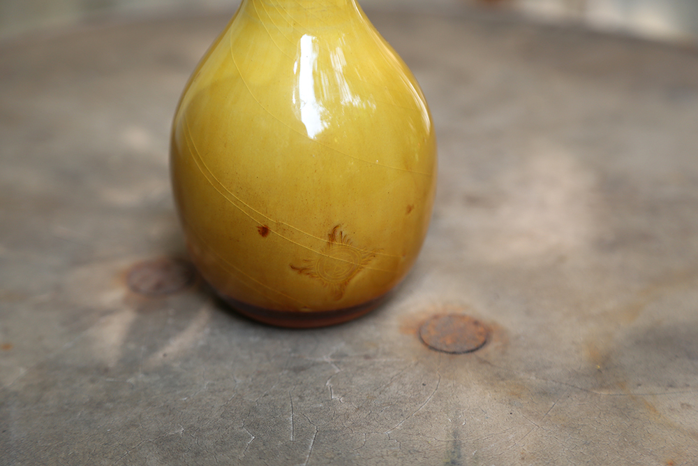 因是手工上釉,釉色不均、釉色氣孔、陶面厚薄不一、形狀不工整,以及因為燒製而產生的自然冰裂釉