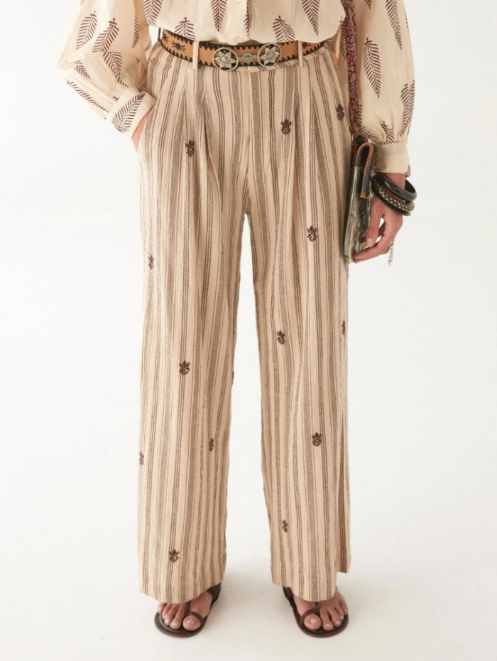 褪色的棕色、陽光漂白的紅色,反映在這條褲子的每一根線上