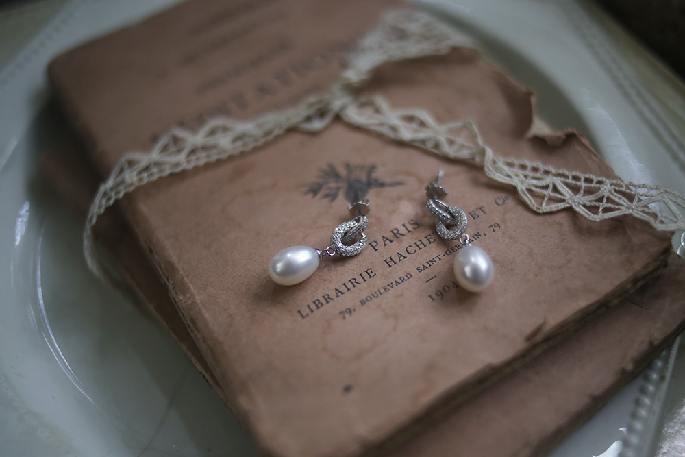 使用真正的法國淡水養殖珍珠於法國珠寶工作室製作