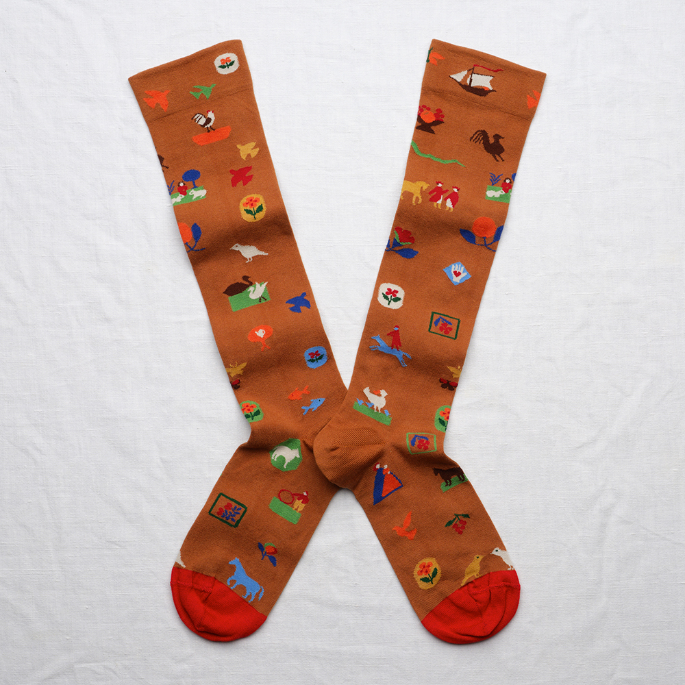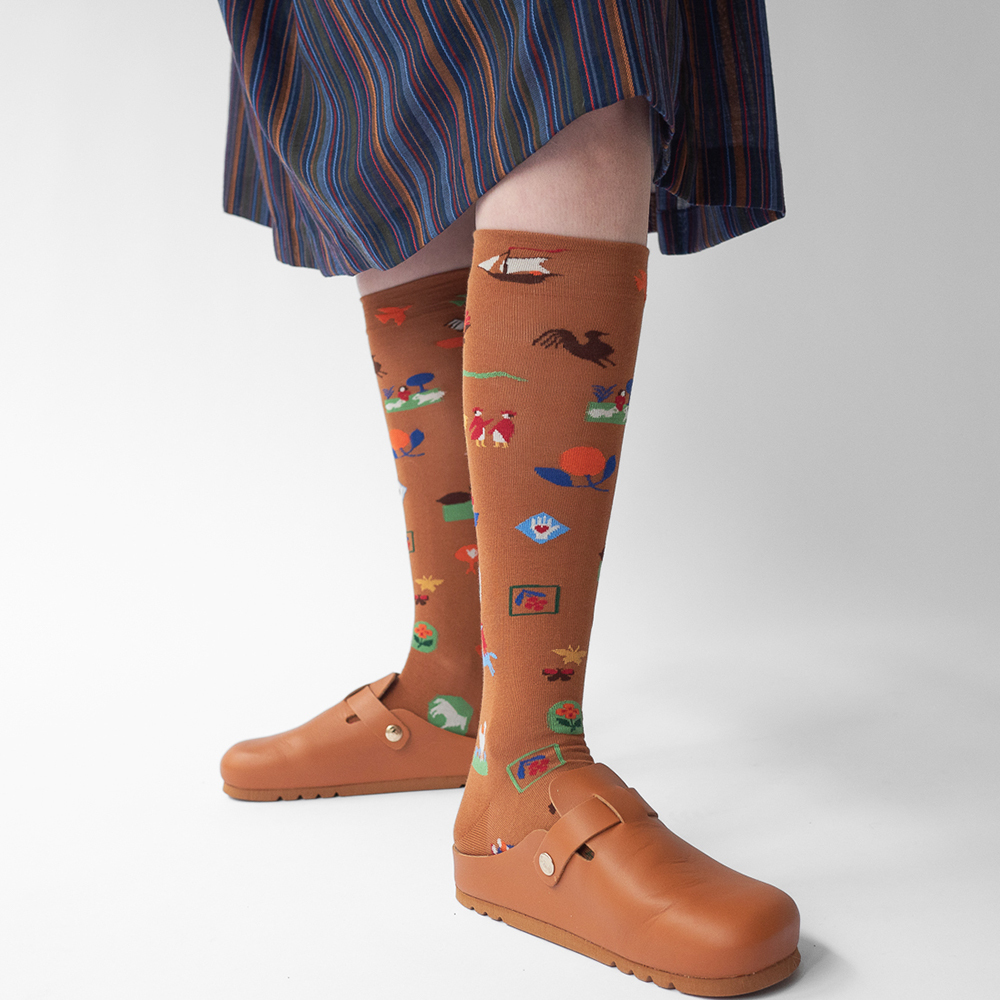 每一雙的襪子都極具一個完整的設計故事,圖騰鮮豔多變細膩,非常百搭,穿上皮鞋、短靴立即有型,