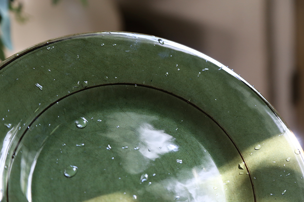 南法陶盤,每種釉色和土的收縮比不同,如果釉色外表有開片,是正常現象,不會影響使用。