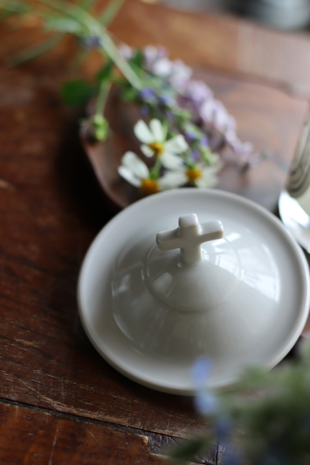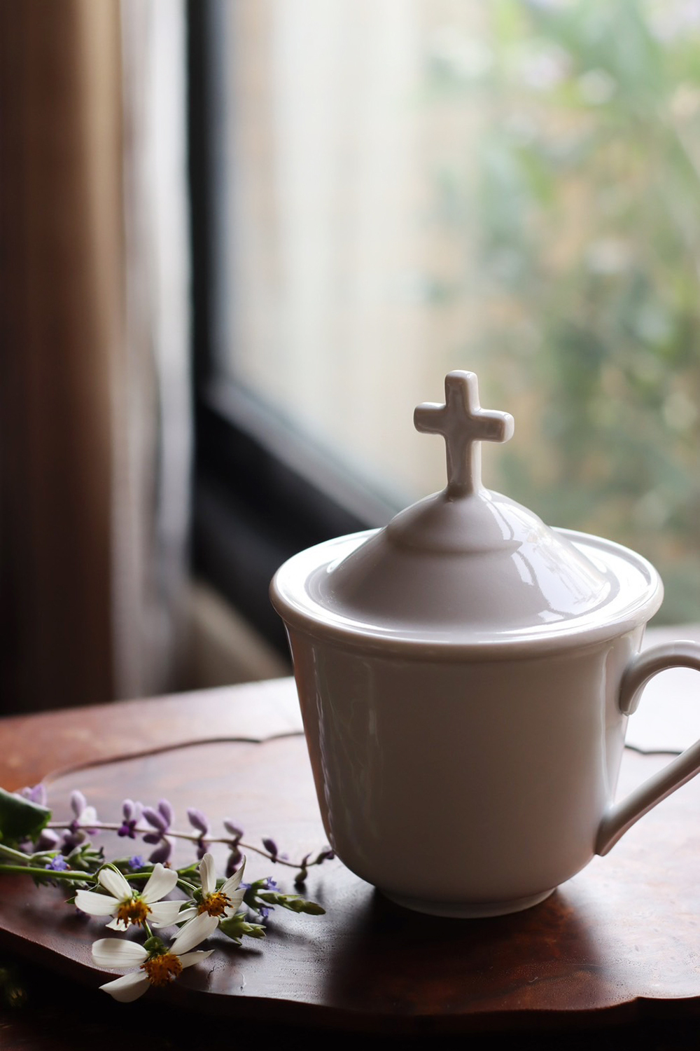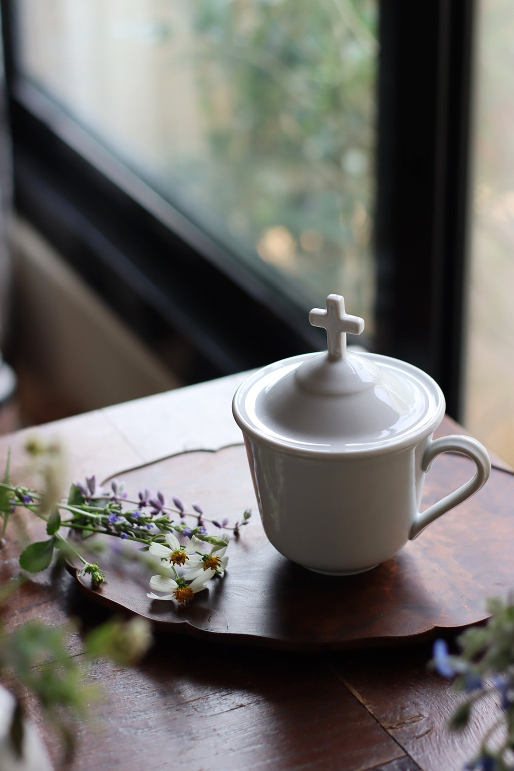 燭蓋的余白,和身邊常使用的法國19世紀利摩日手把杯,非常的契合