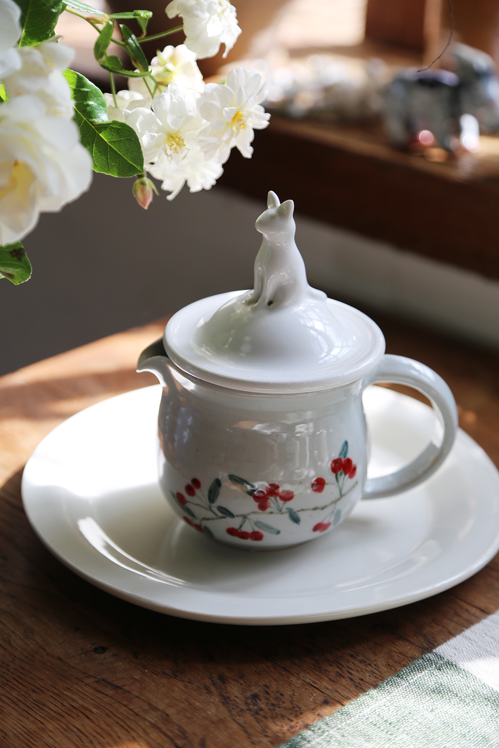 這次邀請白郁民陶作家,以冬天白色森林的動物為概念,捏製了燭蓋杯蓋。