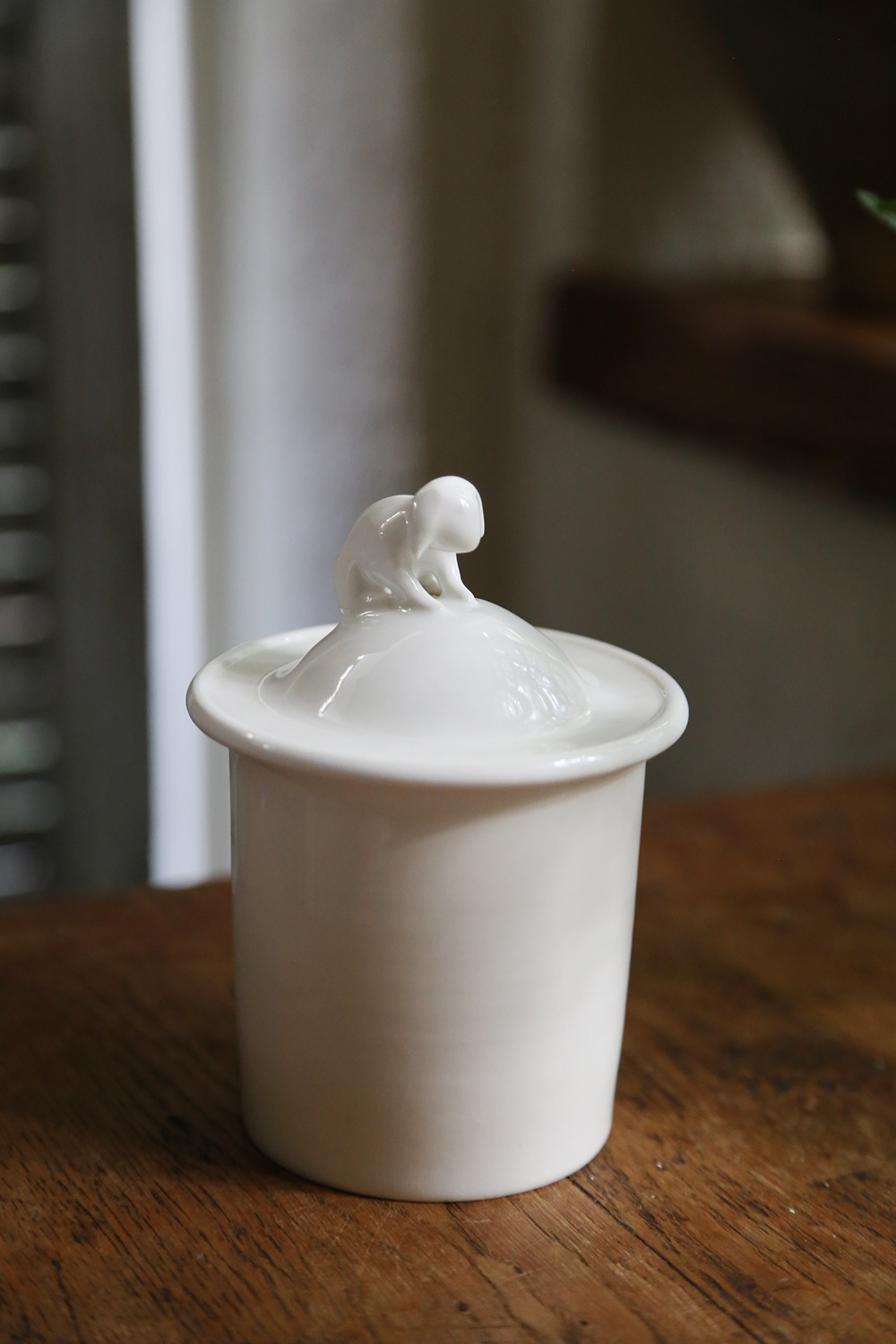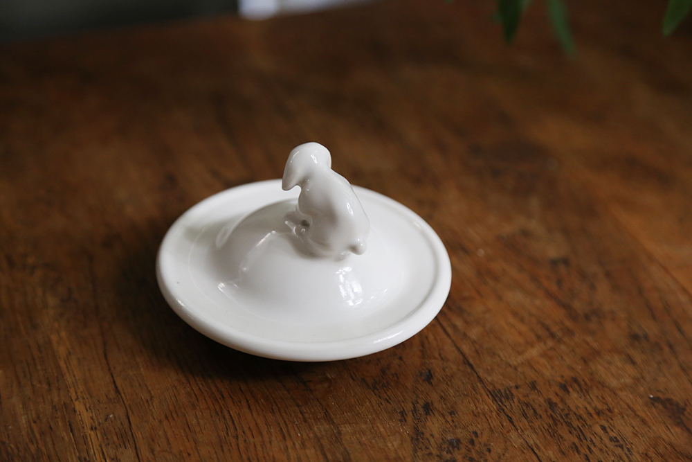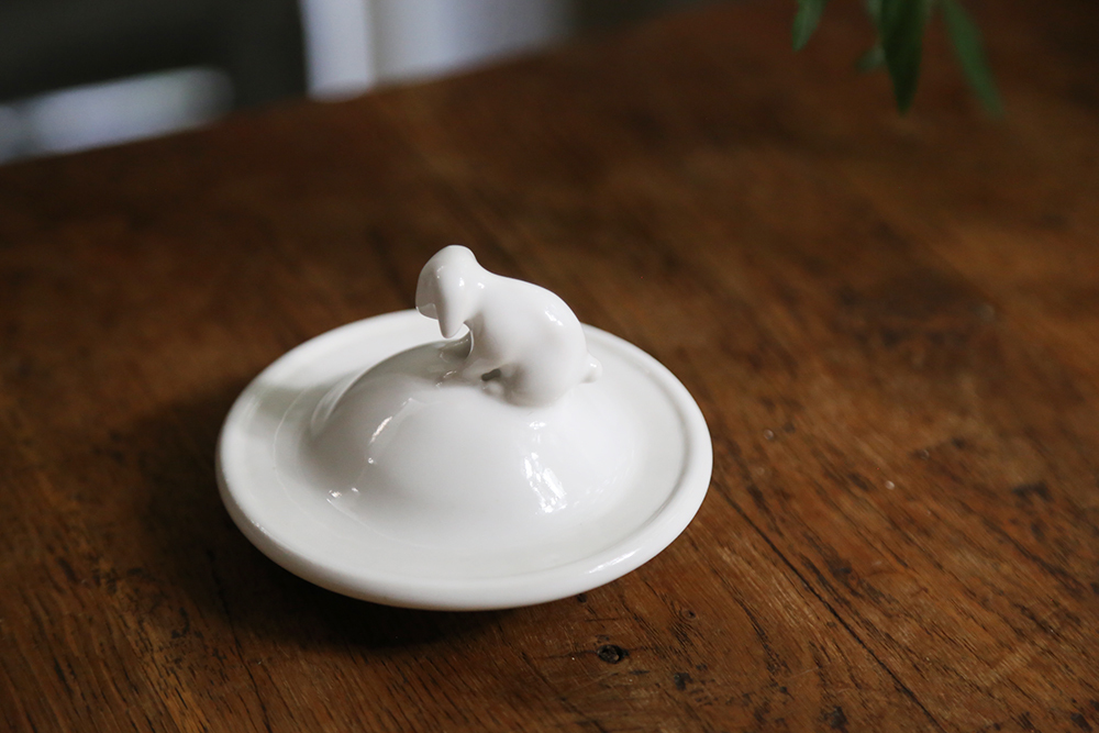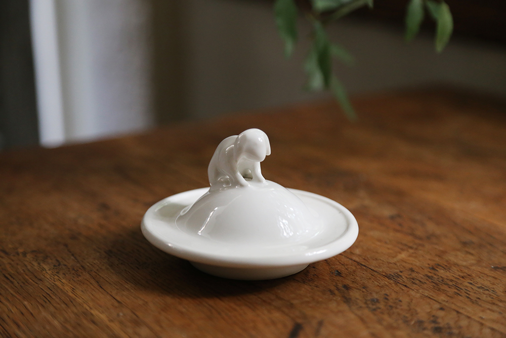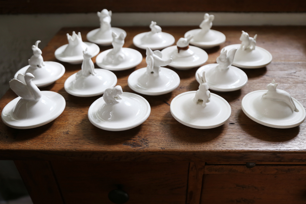 這次邀請白郁民陶作家,以冬天白色森林的動物為概念,捏製了燭蓋杯蓋。