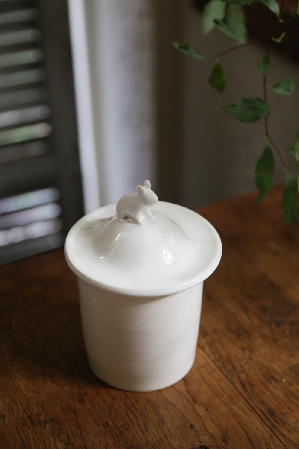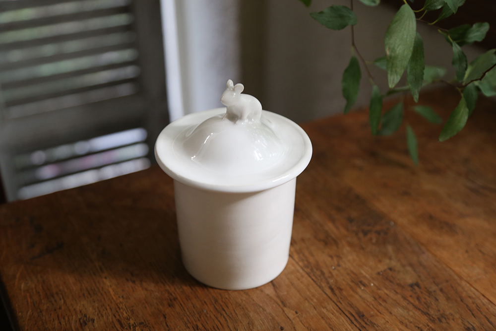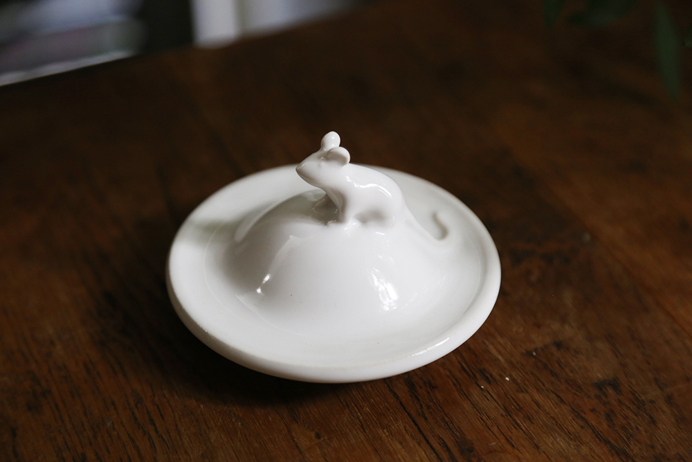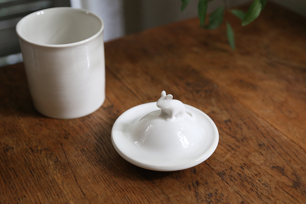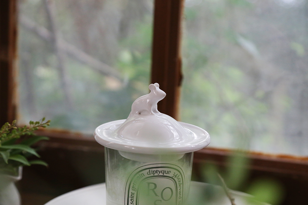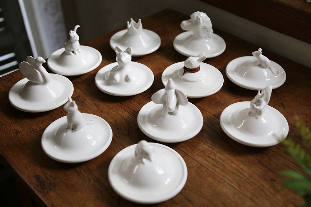 這次邀請白郁民陶作家,以冬天白色森林的動物為概念,捏製了燭蓋杯蓋。