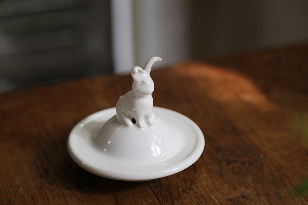 這次邀請白鬱民陶作家,以冬季白色森林的動物為概念,捏製了蠟燭蓋杯蓋。