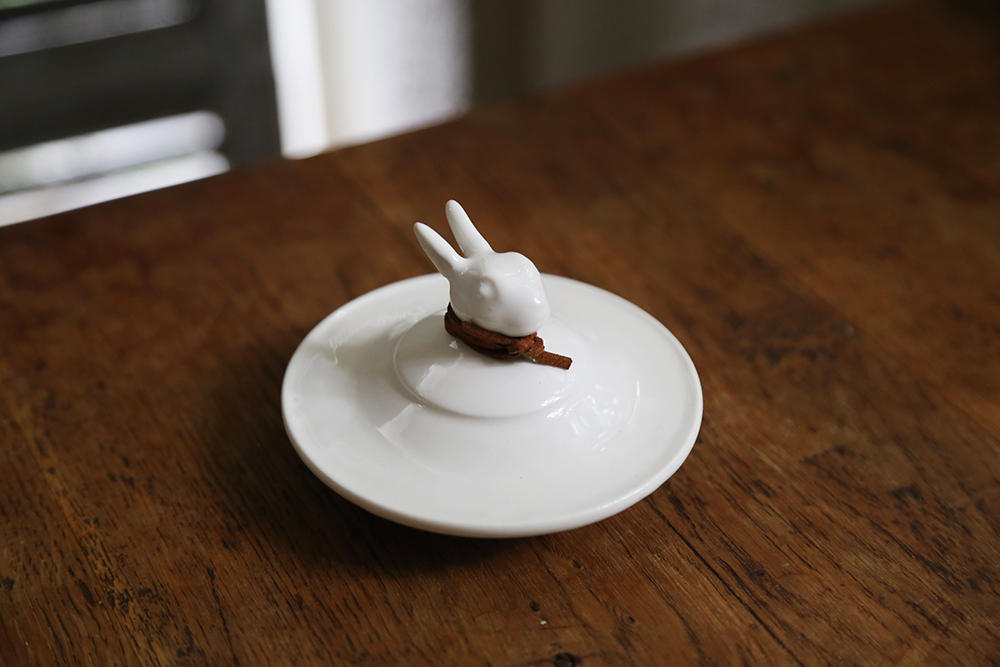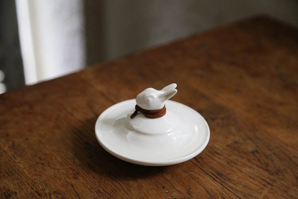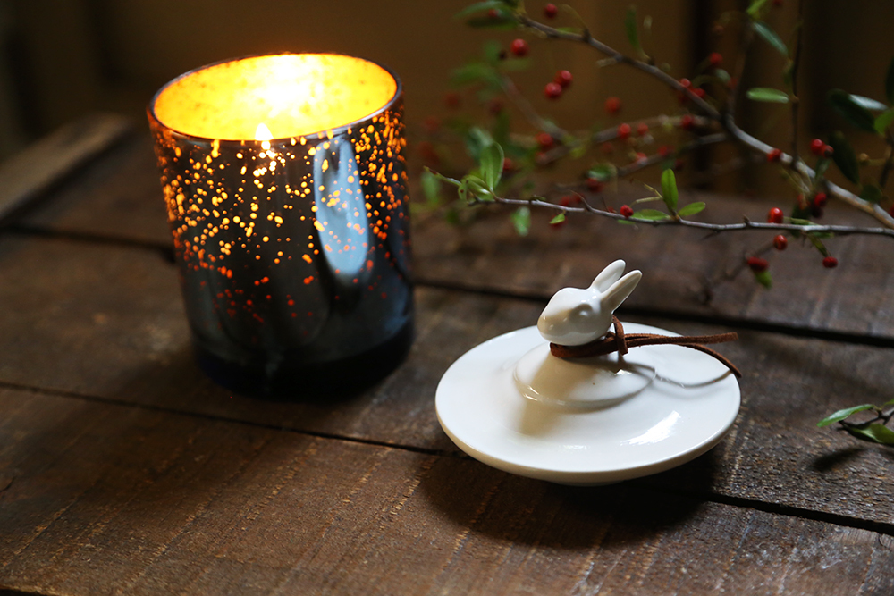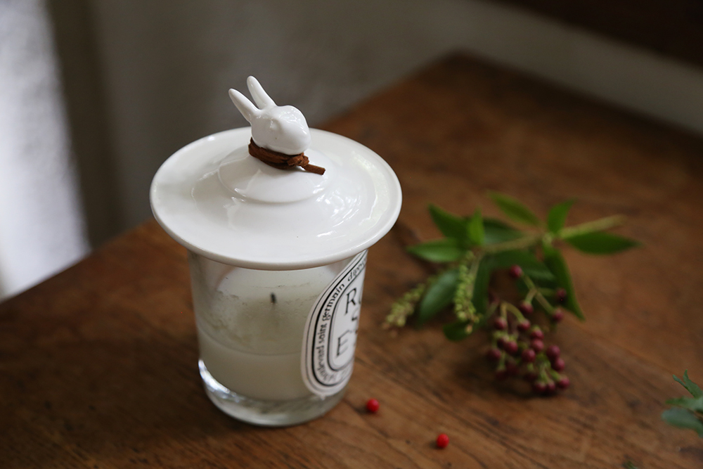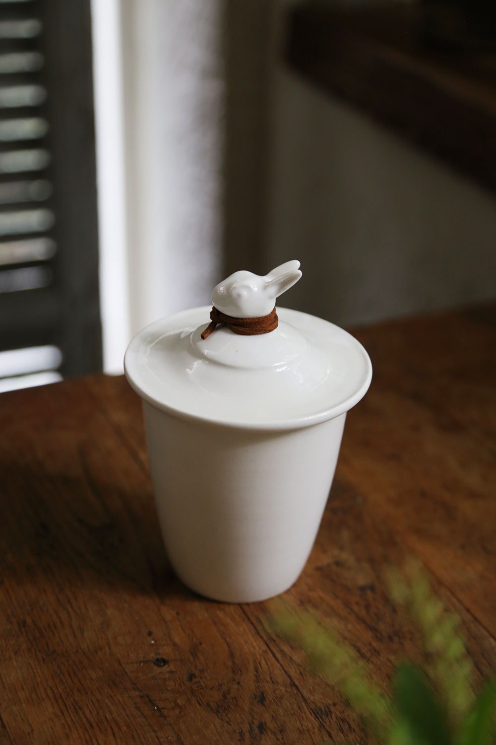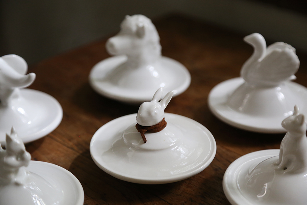 這次邀請白郁民陶作家,以冬天白色森林的動物為概念,捏製了燭蓋杯蓋。