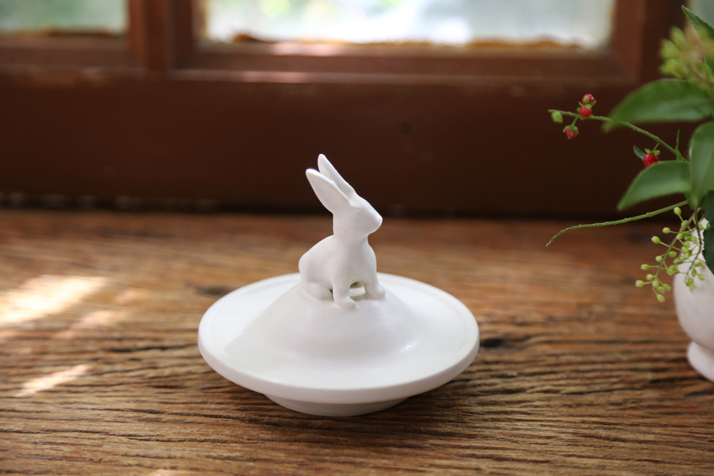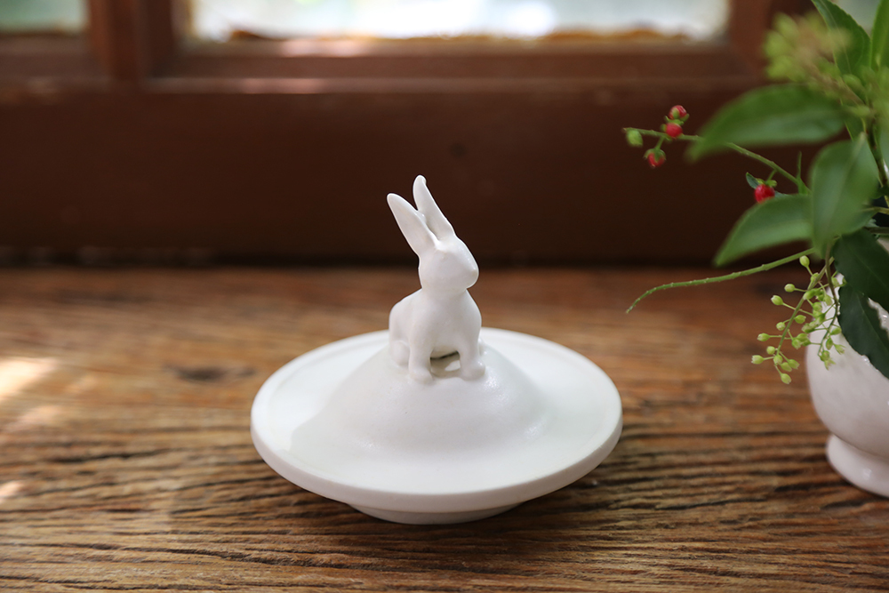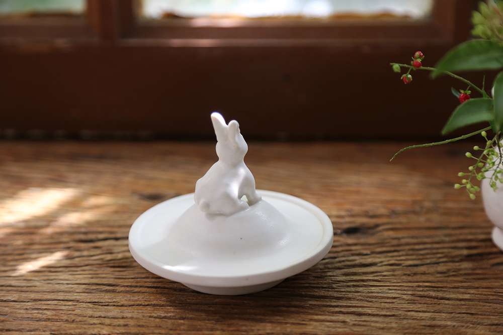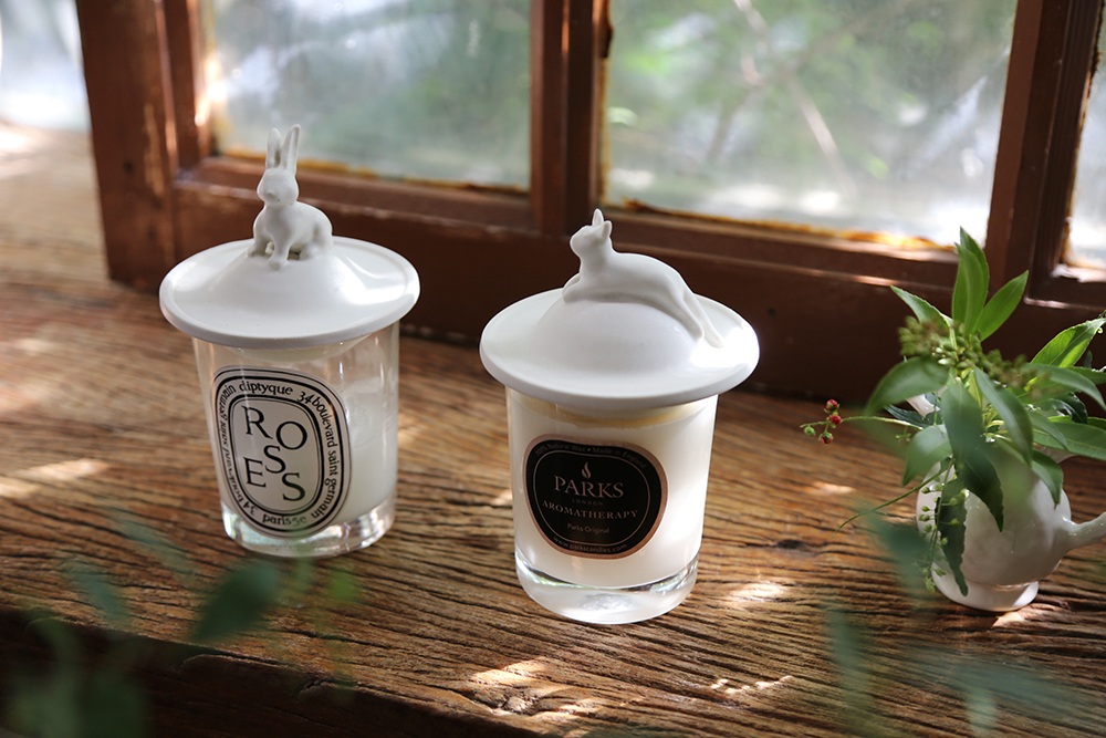 這次邀請白郁民陶作家,以冬天白色森林的動物為概念,捏製了燭蓋杯蓋。