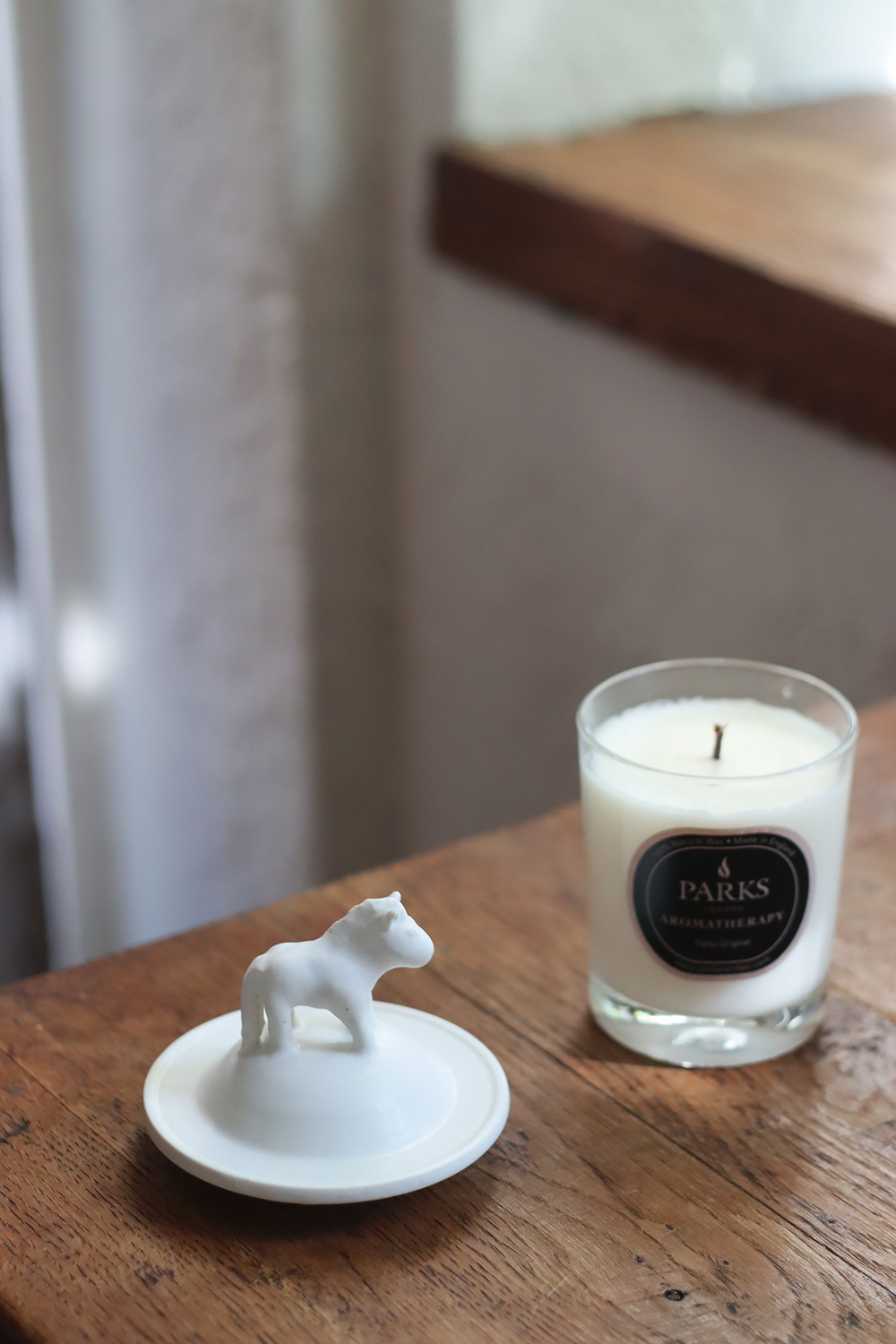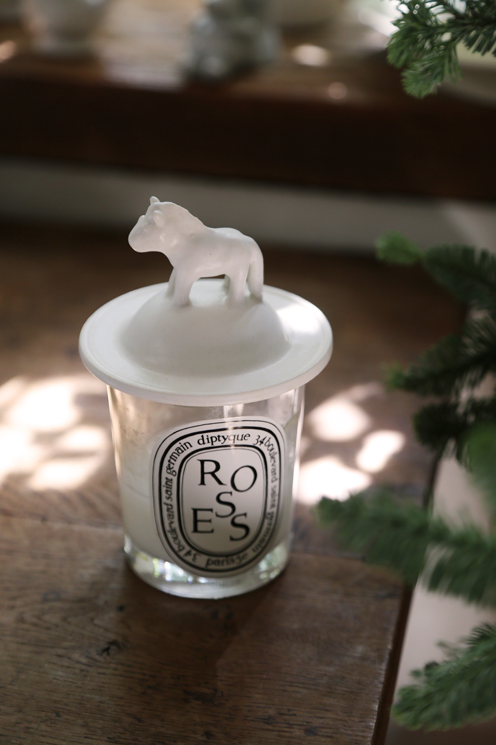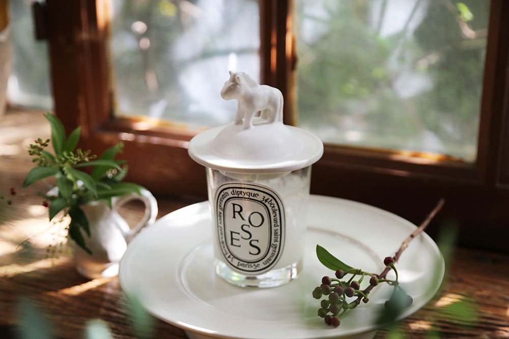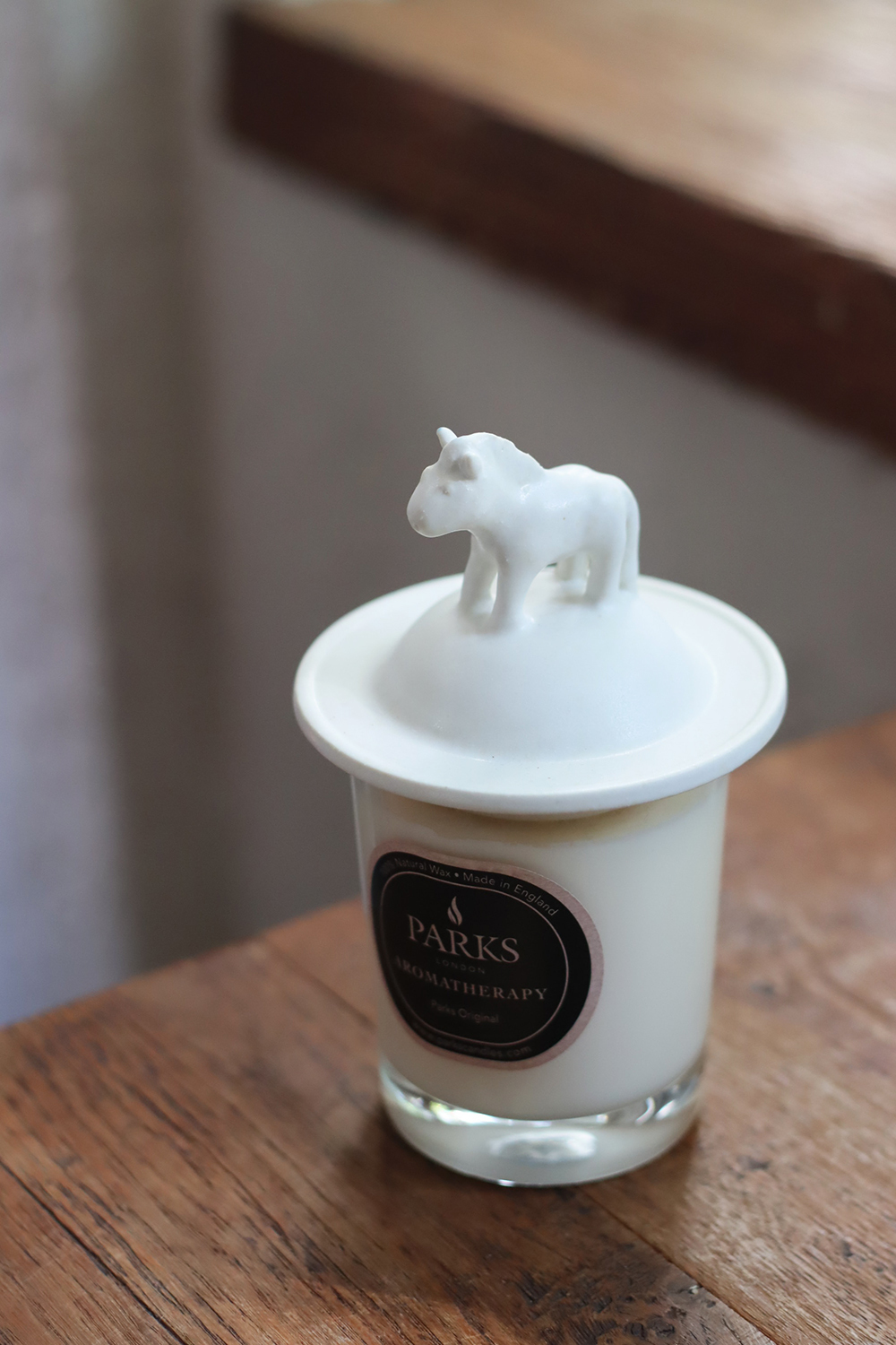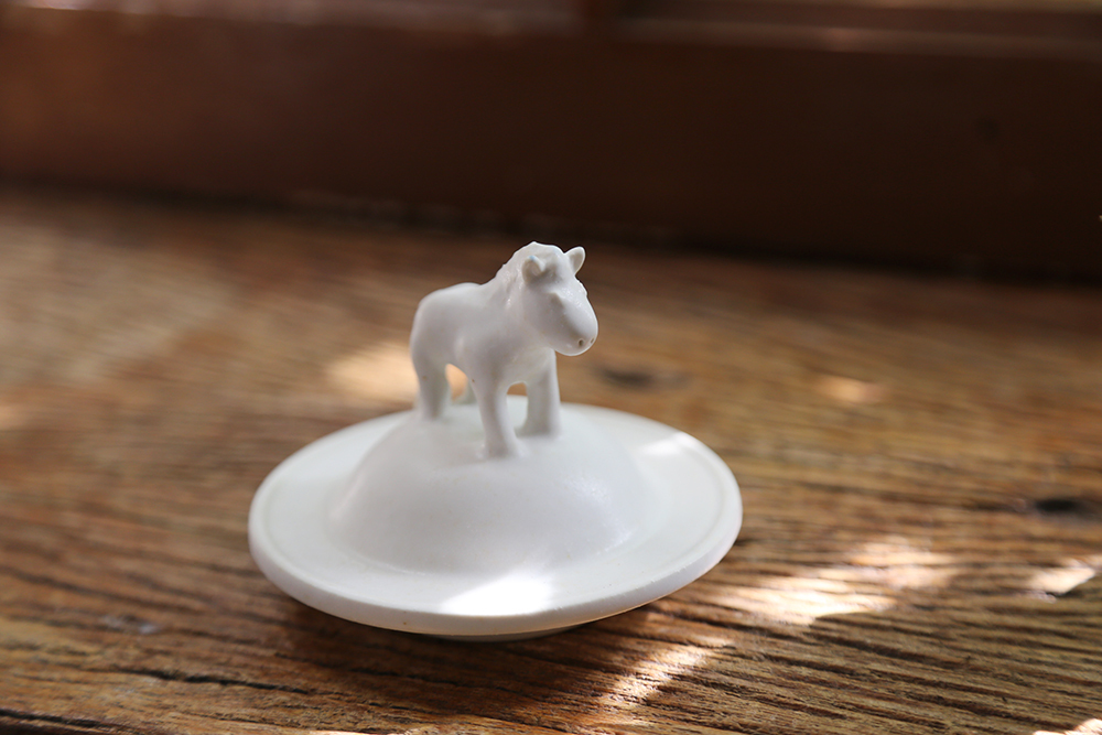 這次邀請白郁民陶作家,以冬天白色森林的動物為概念,捏製了燭蓋杯蓋。