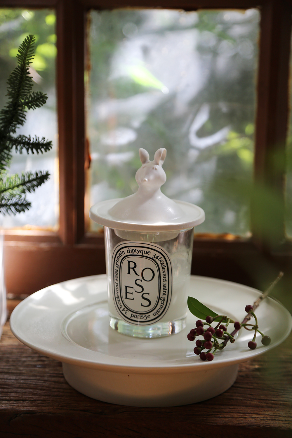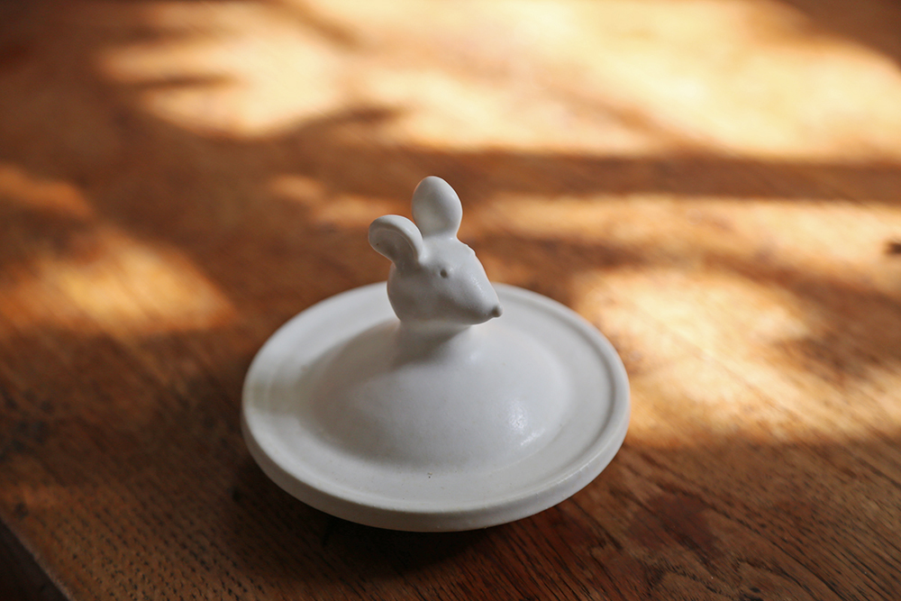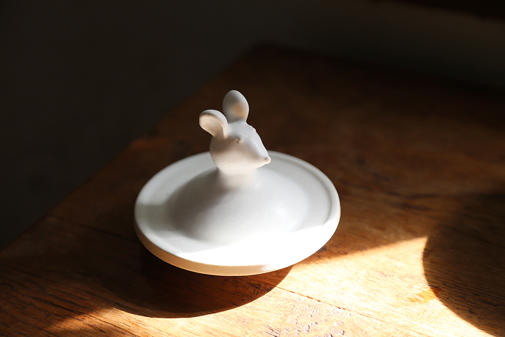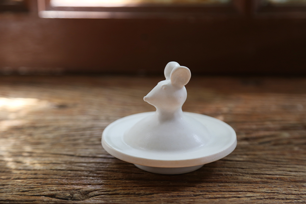 這次邀請白郁民陶作家,以冬天白色森林的動物為概念,捏製了燭蓋杯蓋。