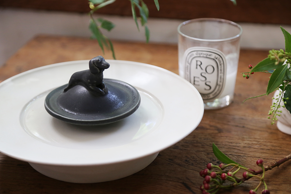 這次邀請白郁民陶作家,以冬天白色森林的動物為概念,捏製了燭蓋杯蓋。