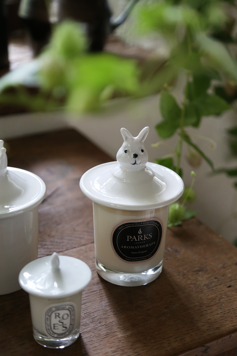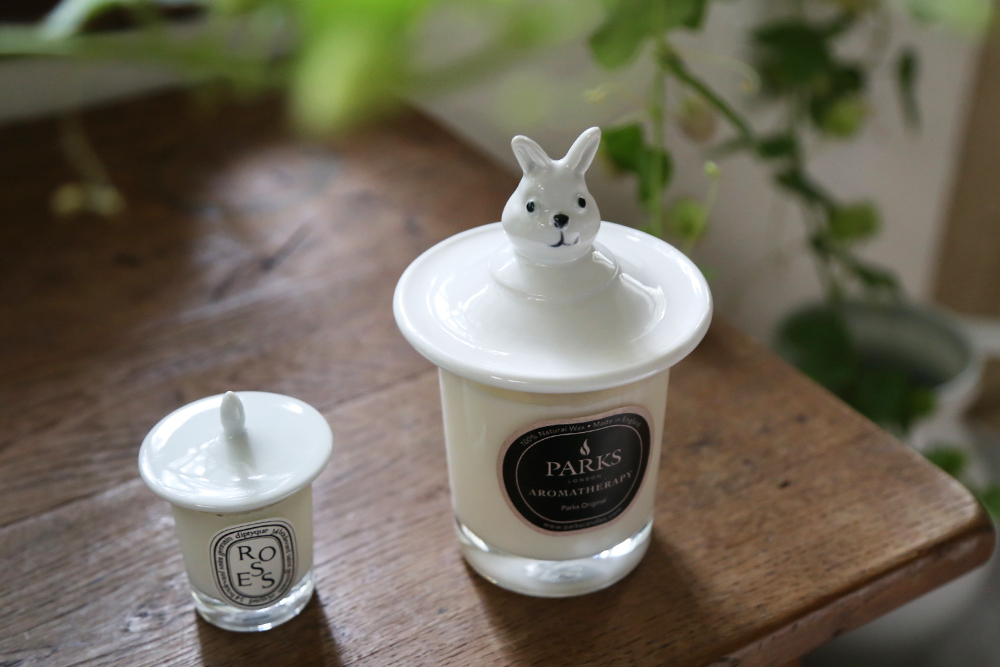 優雅的兔子燭蓋,輕輕的蓋上,即可熄火