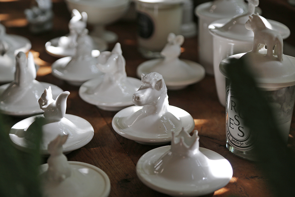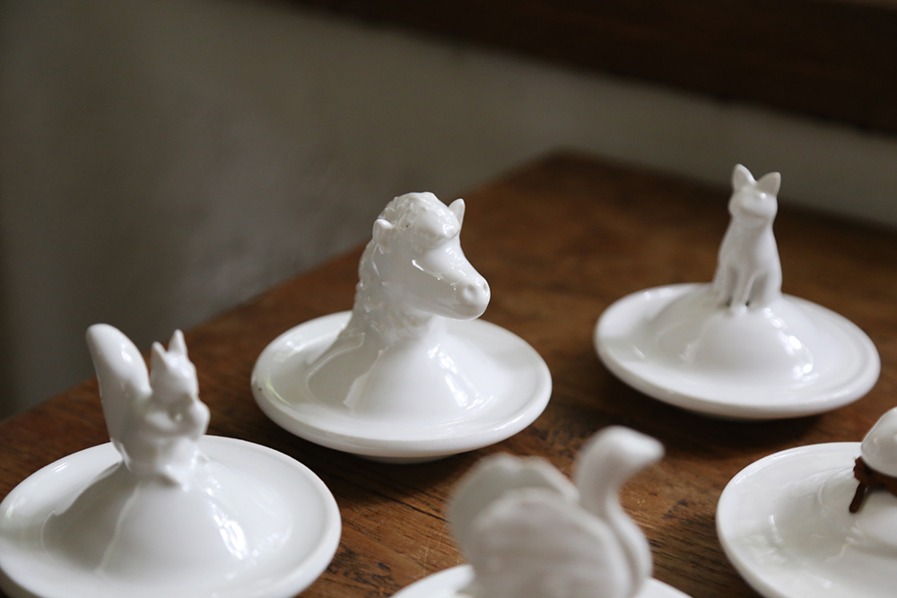 這次邀請白郁民陶作家,以冬天白色森林的動物為概念,捏製了燭蓋杯蓋。
