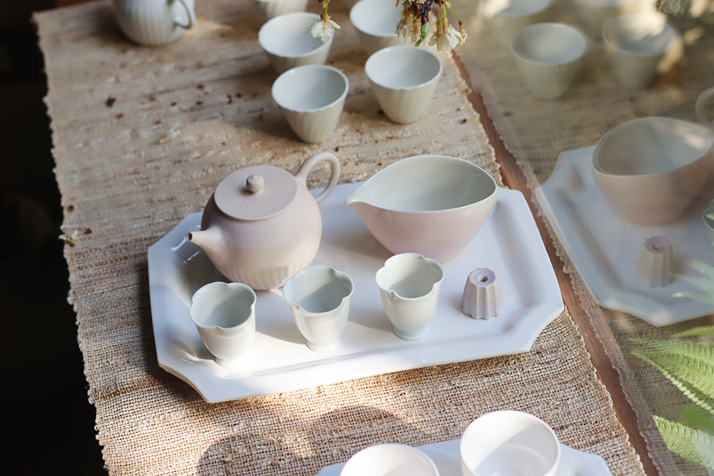 使用日本瓷土製作,土本身的密度極高傳熱快,燒製時能讓壺具呈現更細緻