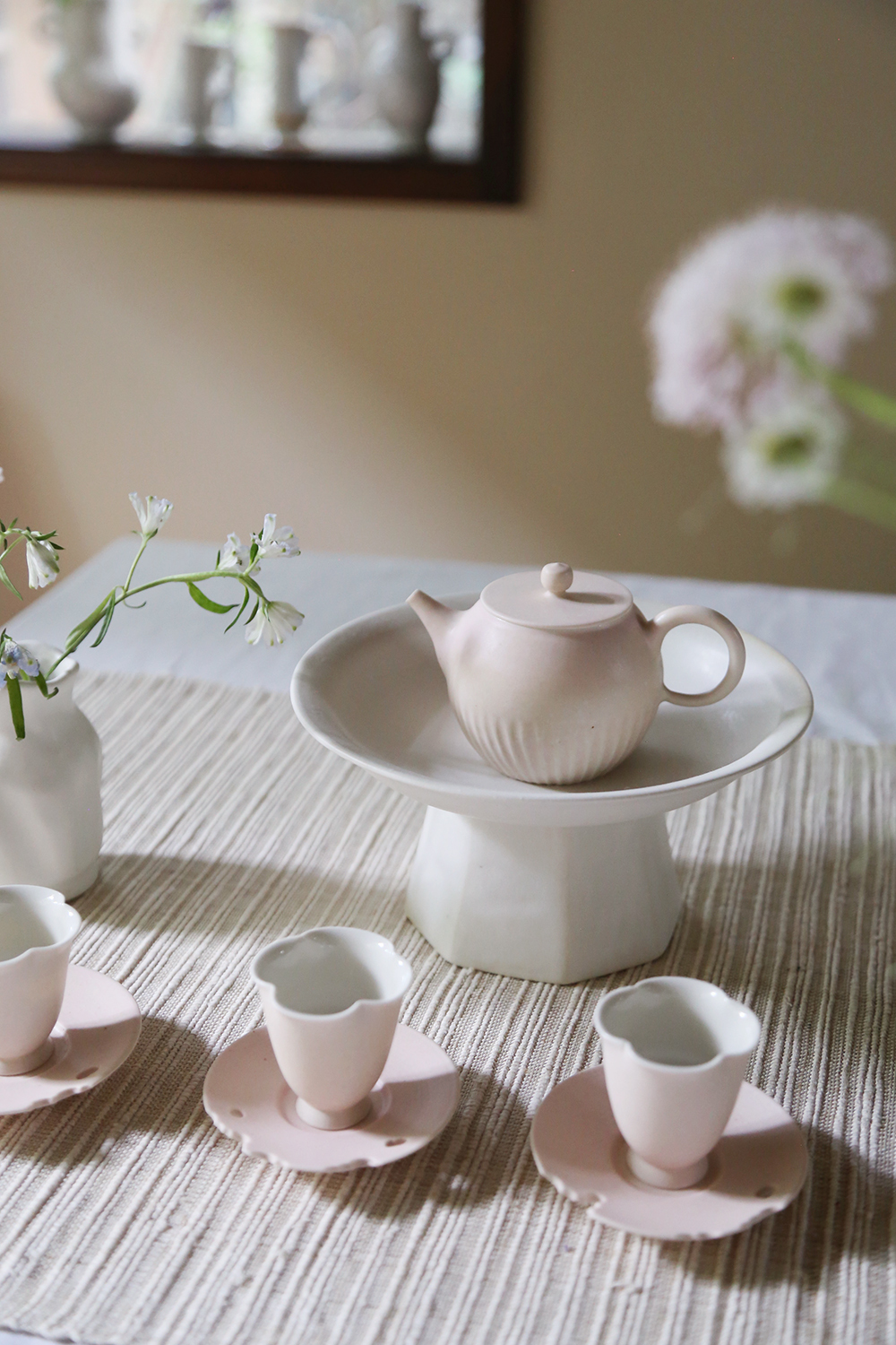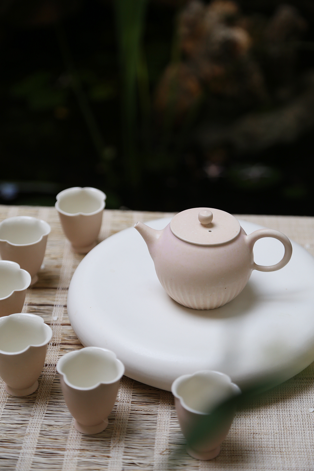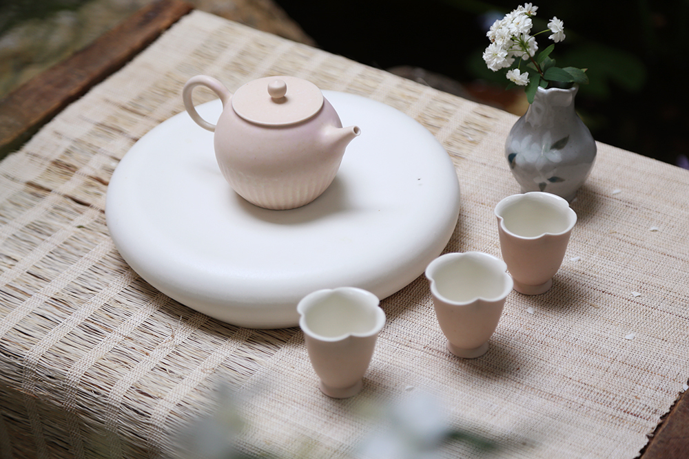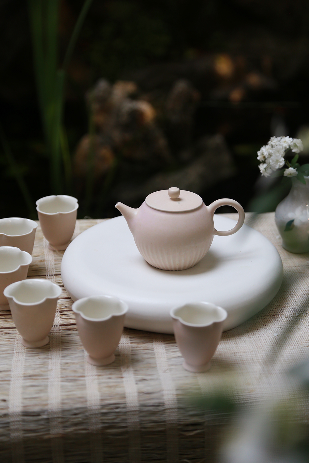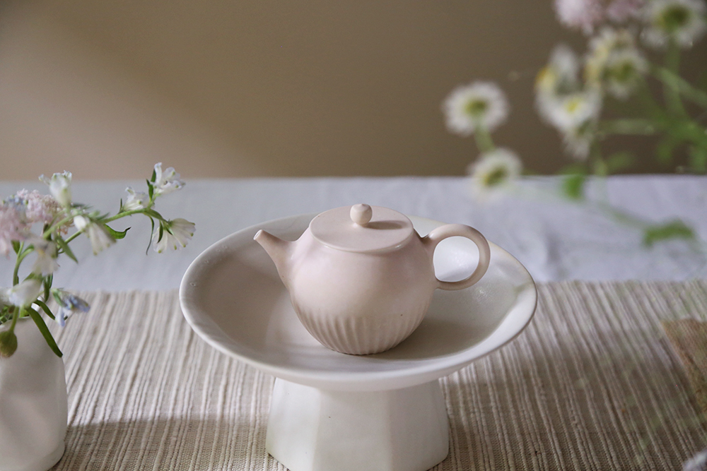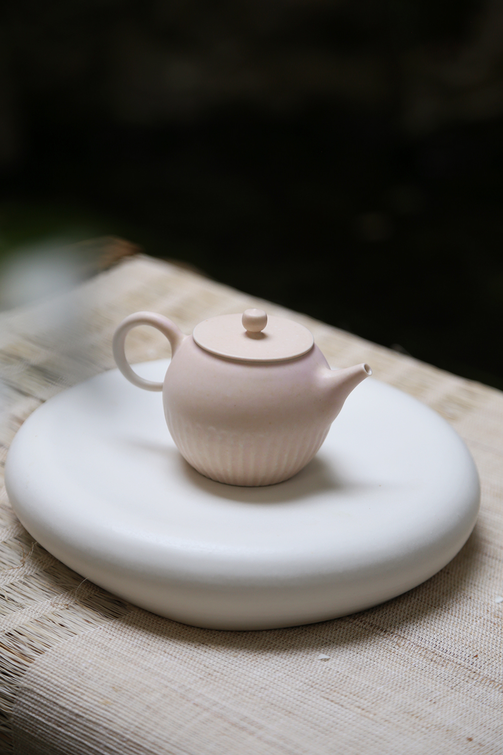 使用日本瓷土製作,土本身的密度極高傳熱快,燒製時能讓壺具呈現更細緻