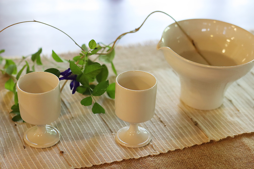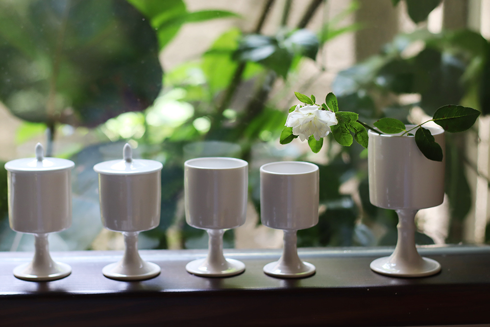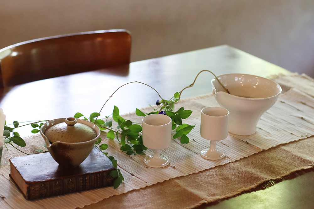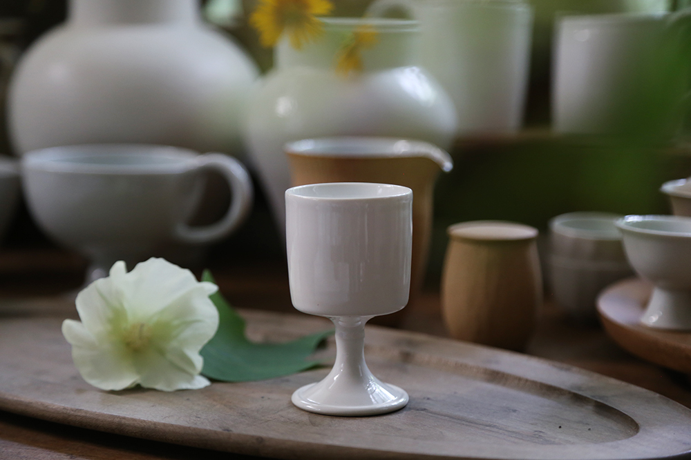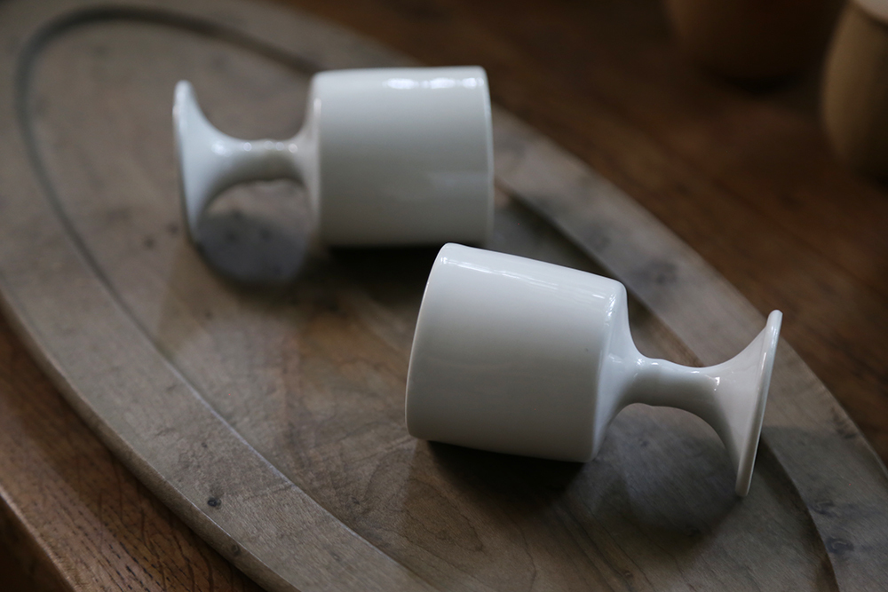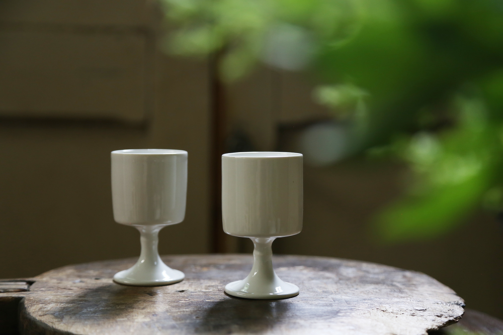 使用日本瓷土製作,土本身的密度極高傳熱快,燒製品杯時能讓杯具呈現更細緻