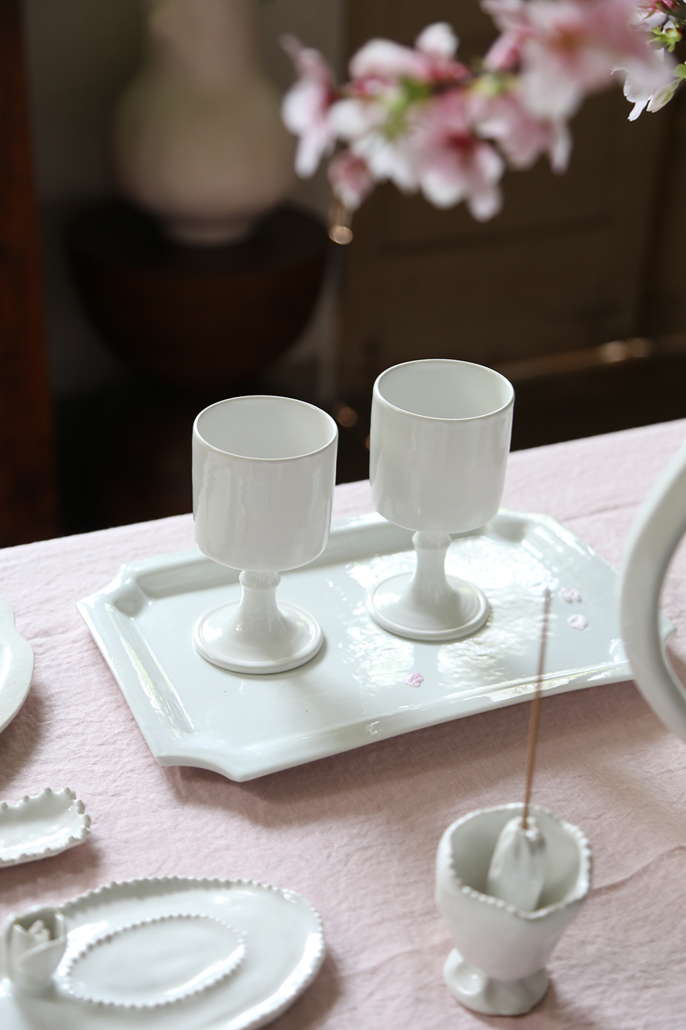使用日本瓷土製作,土本身的密度極高傳熱快,燒製品杯時能讓杯具呈現更細緻
