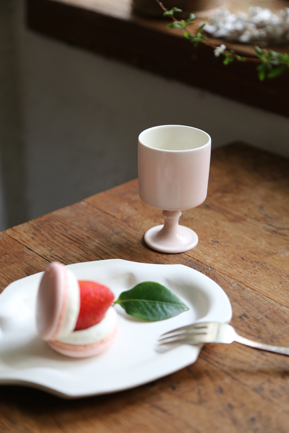 使用日本瓷土製作,土本身的密度極高傳熱快,燒製品杯時能讓杯具呈現更細緻