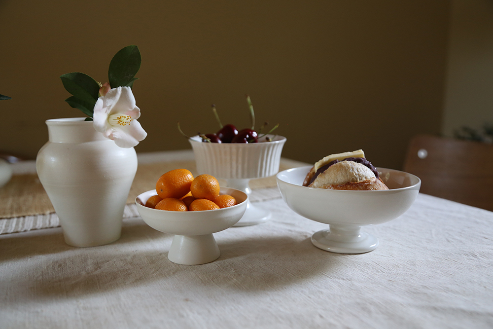 溫潤的白瓷釉色 ,帶著優雅低腳的設計