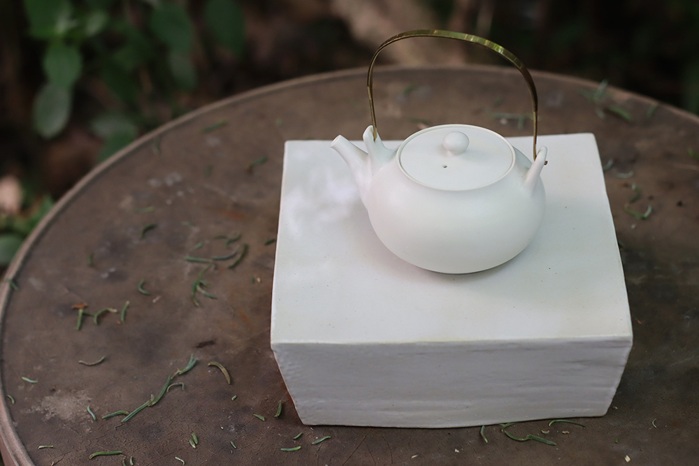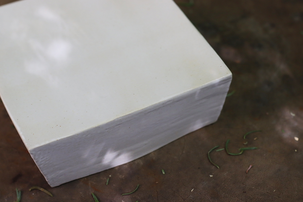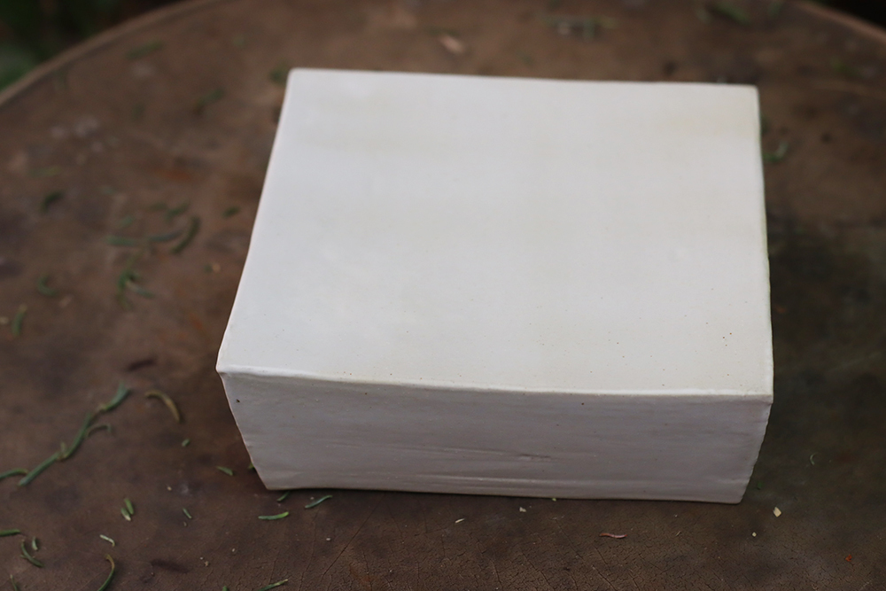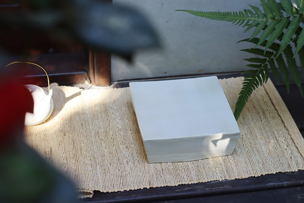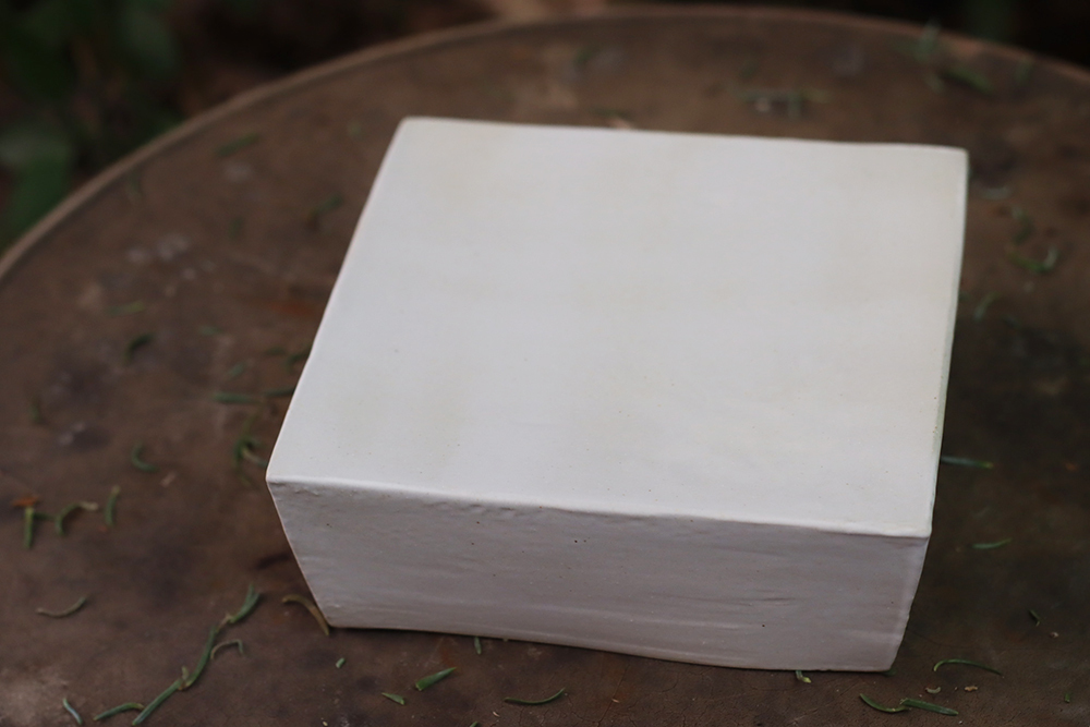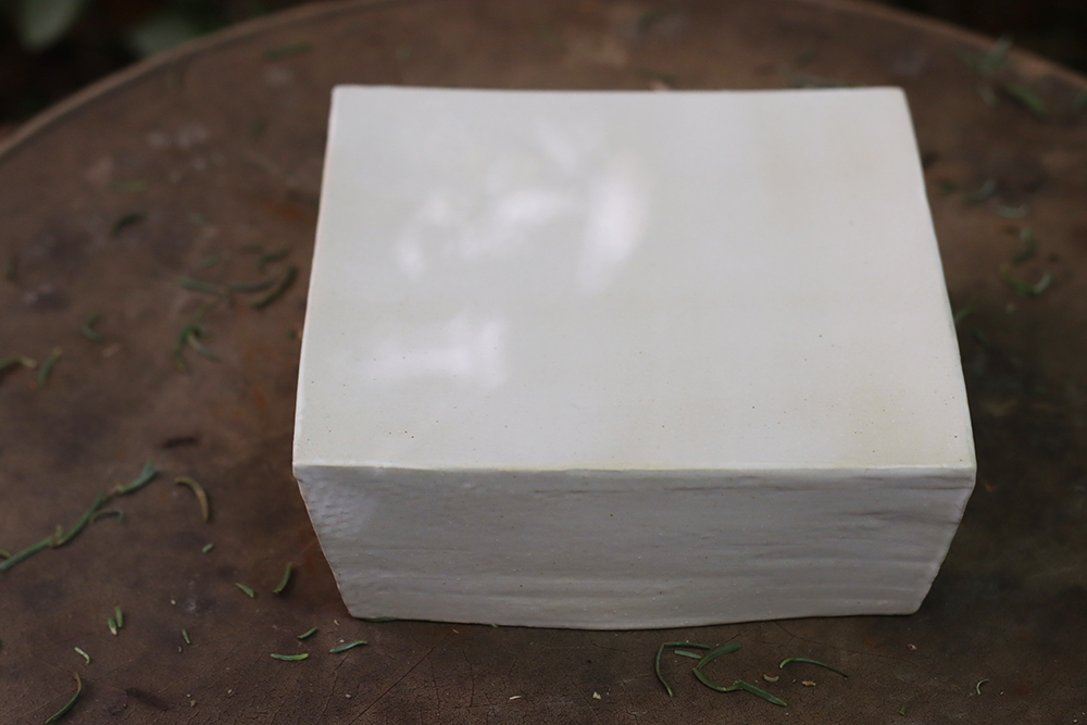 以陶砌成四方 質樸的白色釉 像塊紮實釉綿密的板豆腐