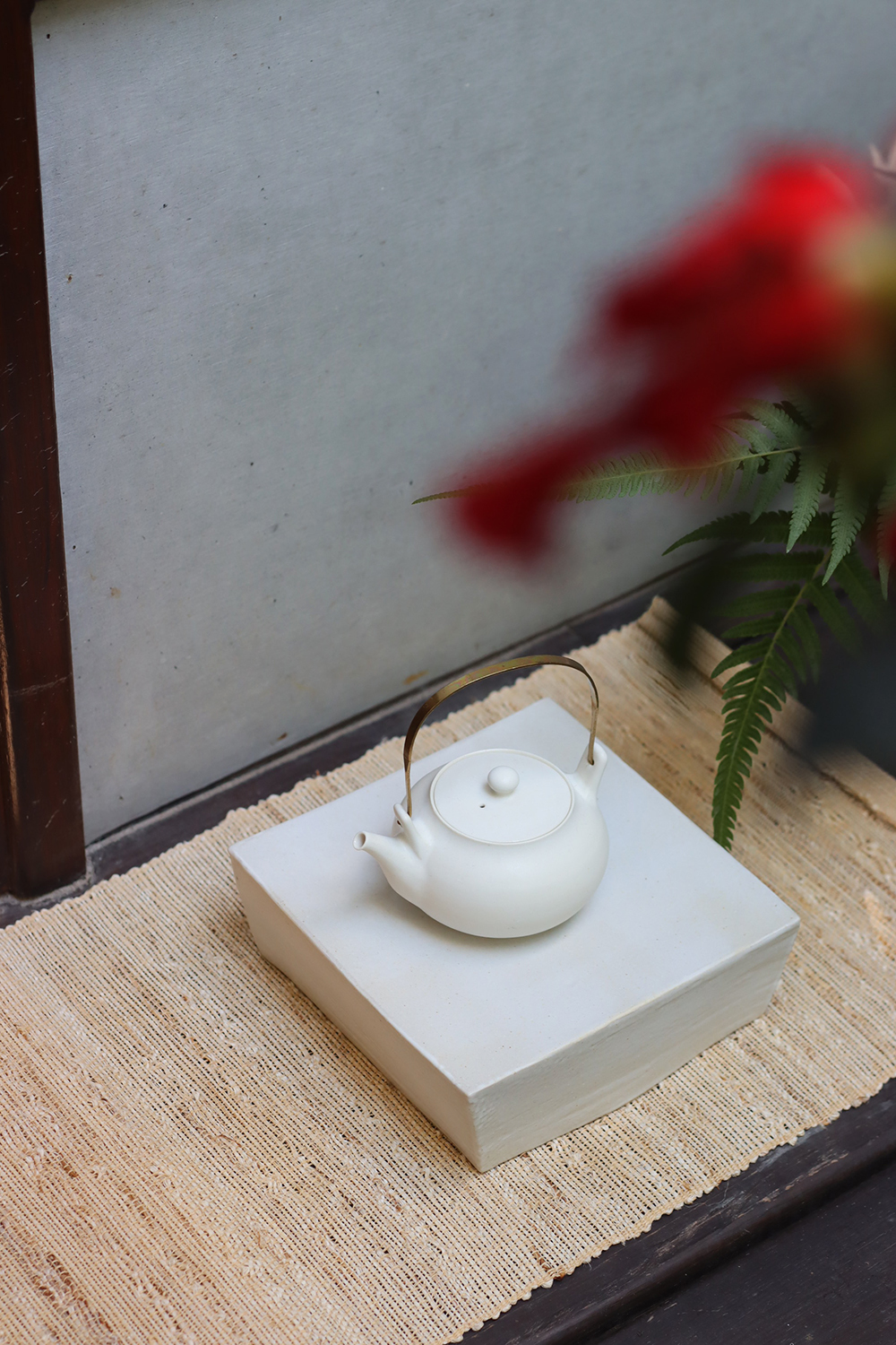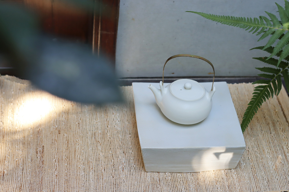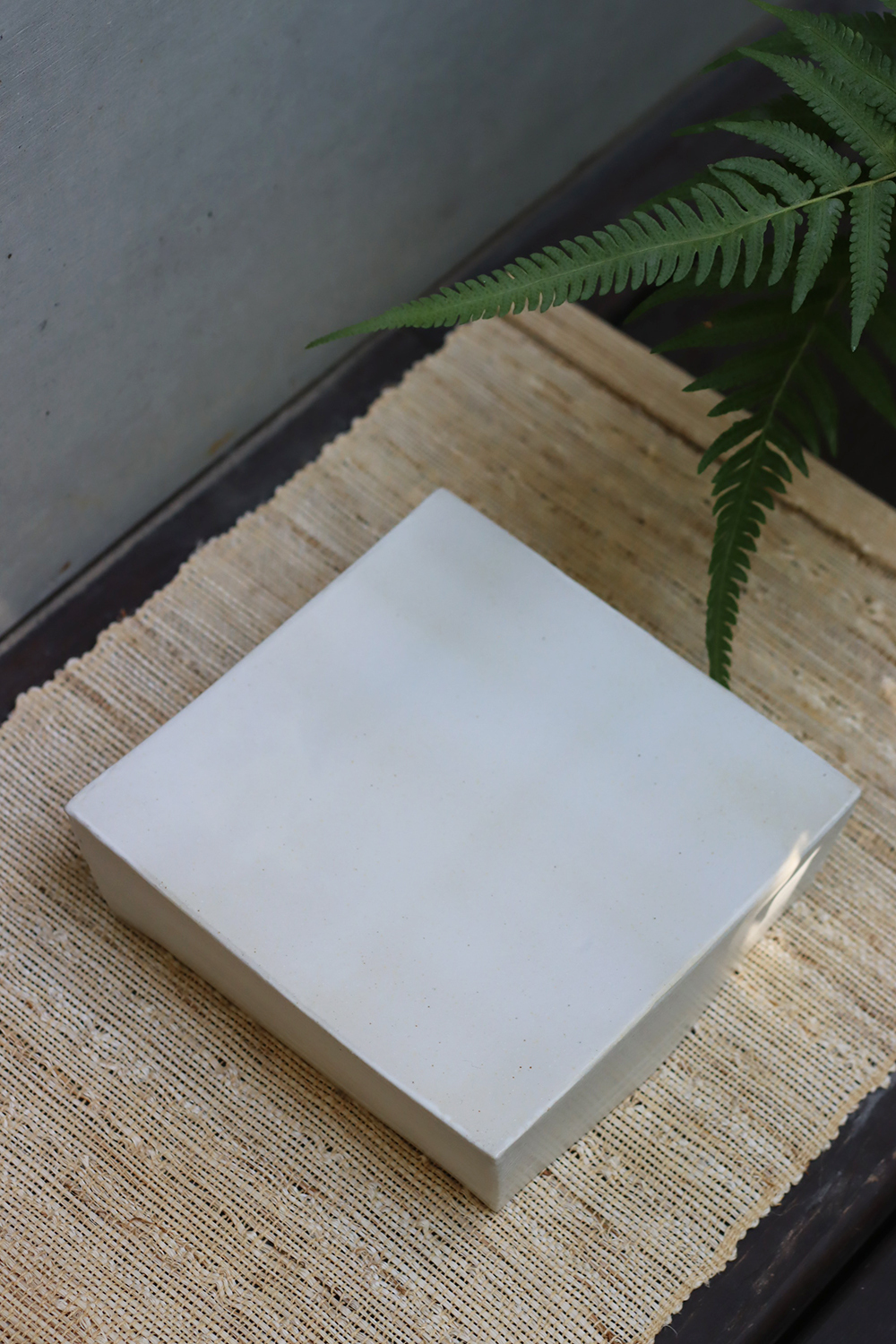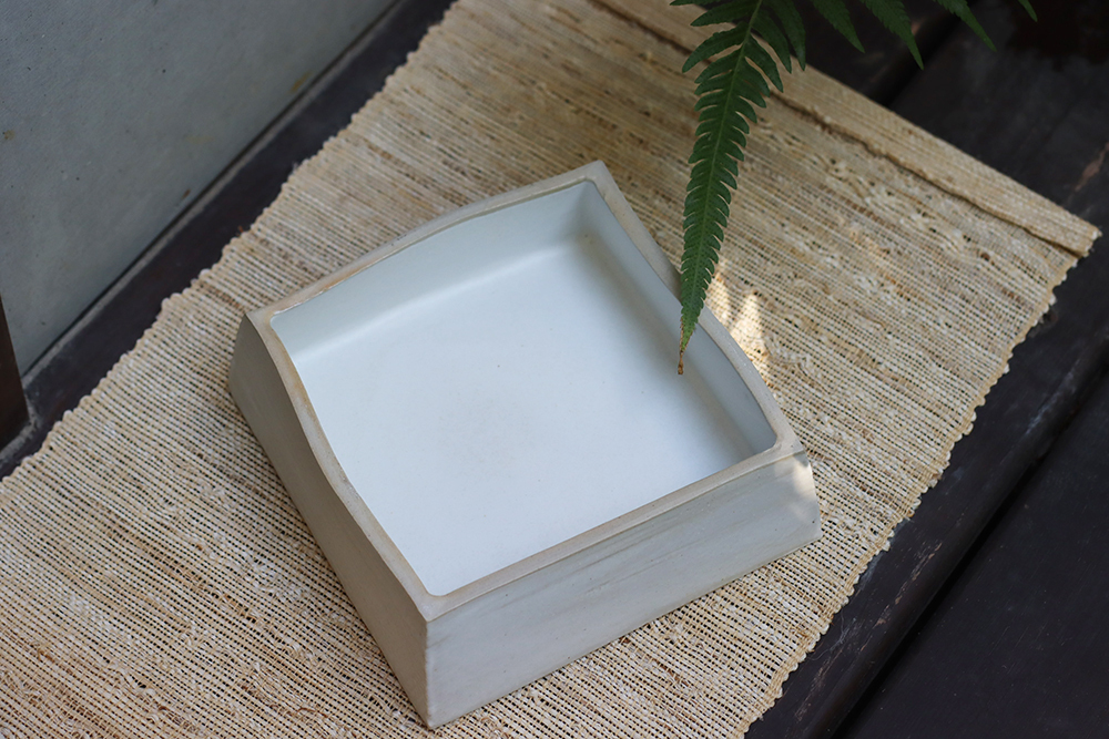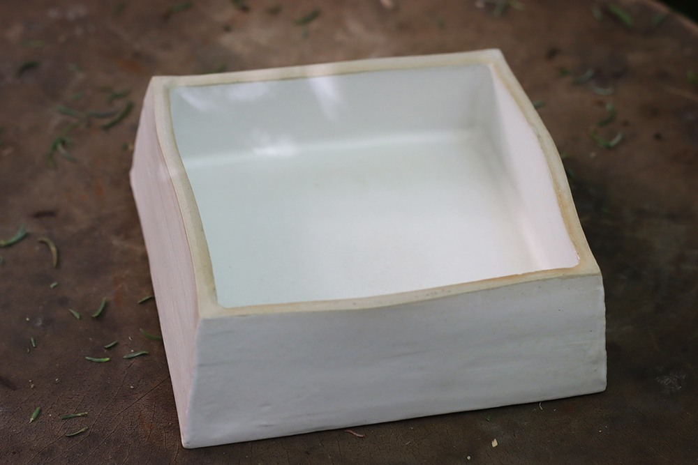 以陶砌成四方 質樸的白色釉 像塊紮實釉綿密的板豆腐