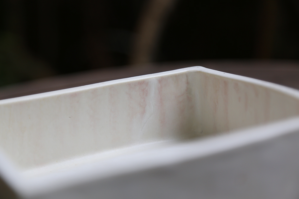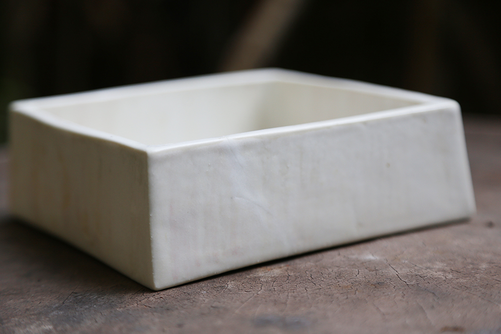 以陶砌成四方 質樸的白色釉 像塊紮實釉綿密的板豆腐
