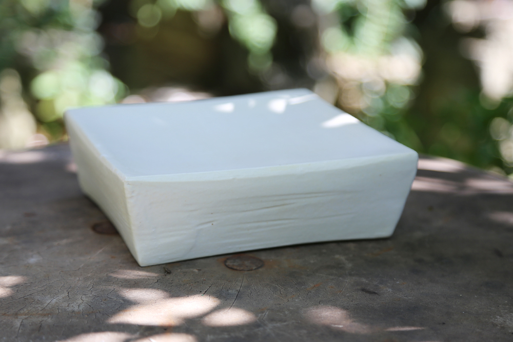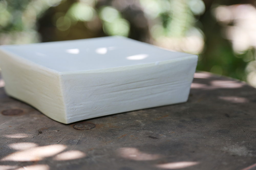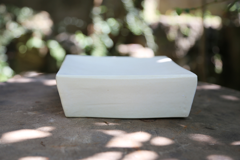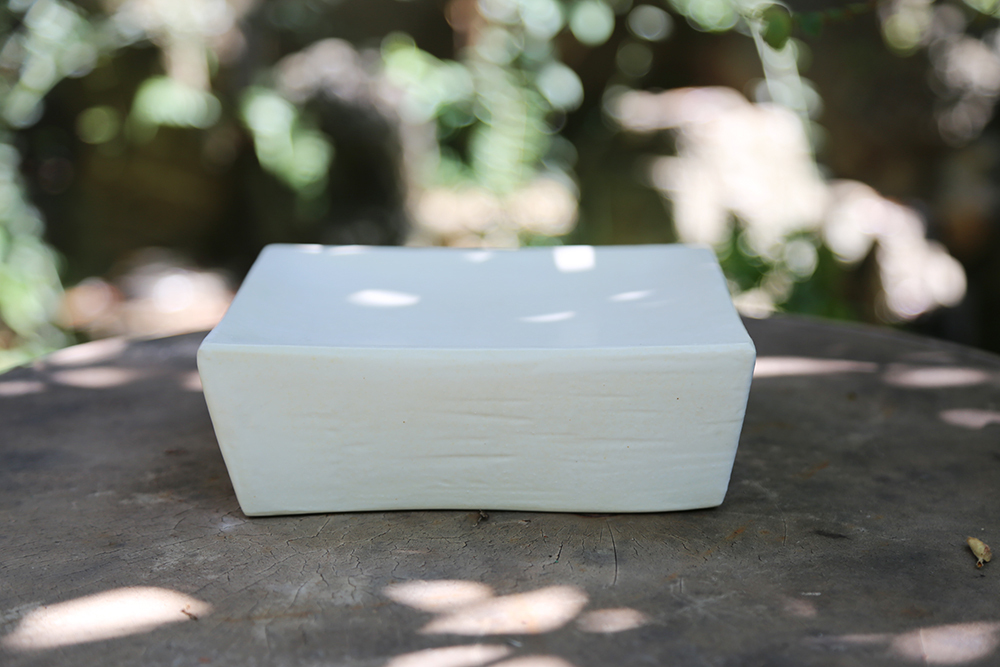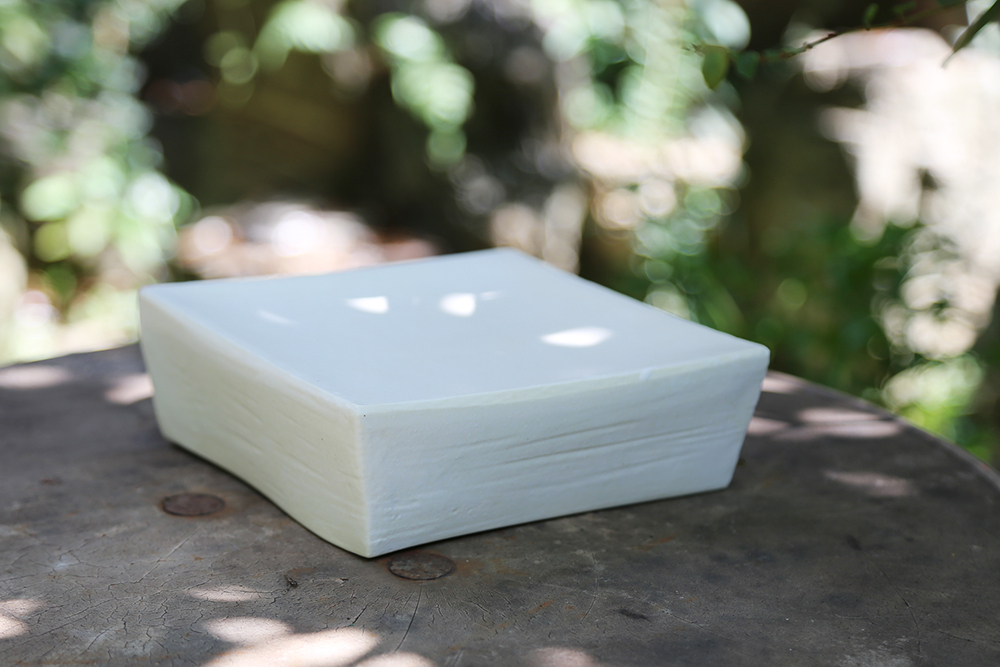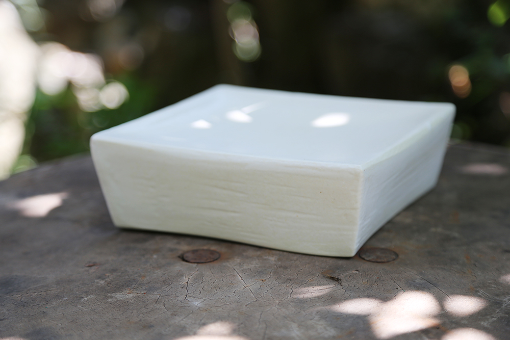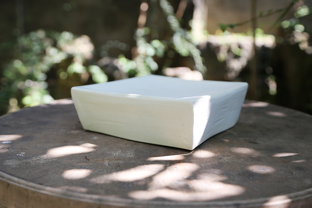 以陶砌成四方 質樸的白色釉 像塊紮實釉綿密的板豆腐