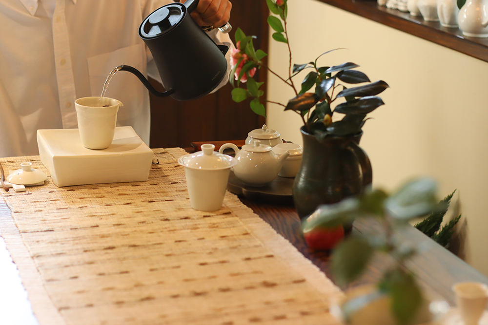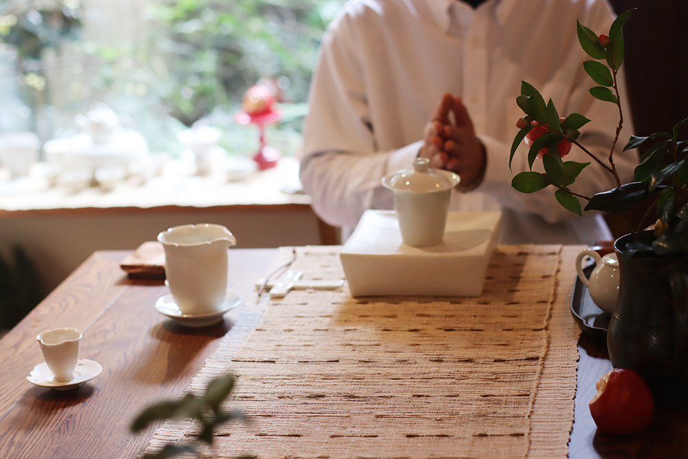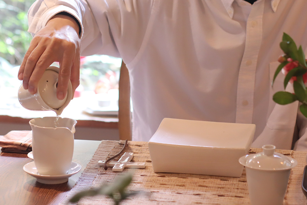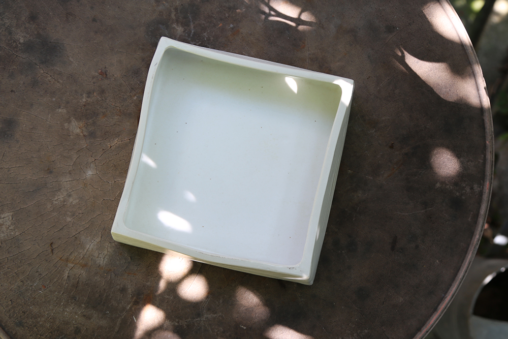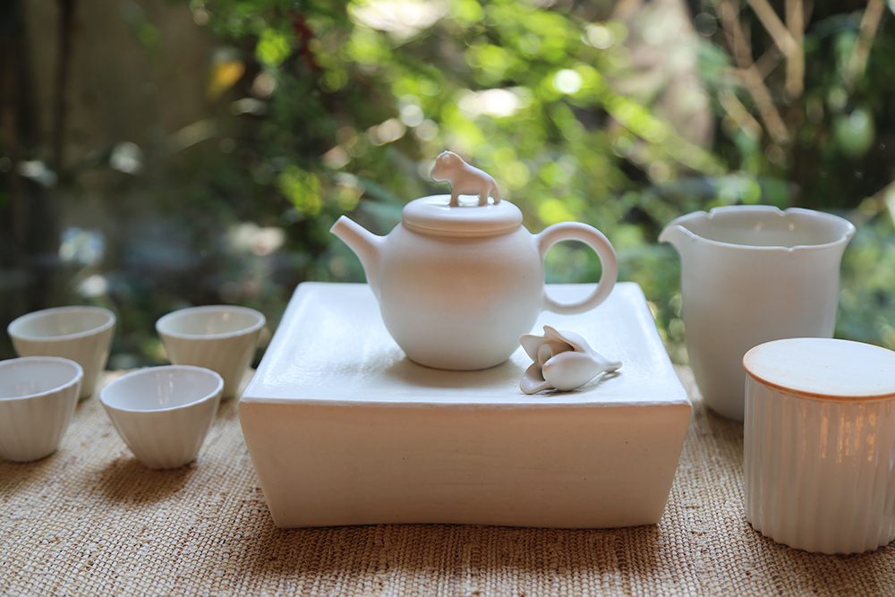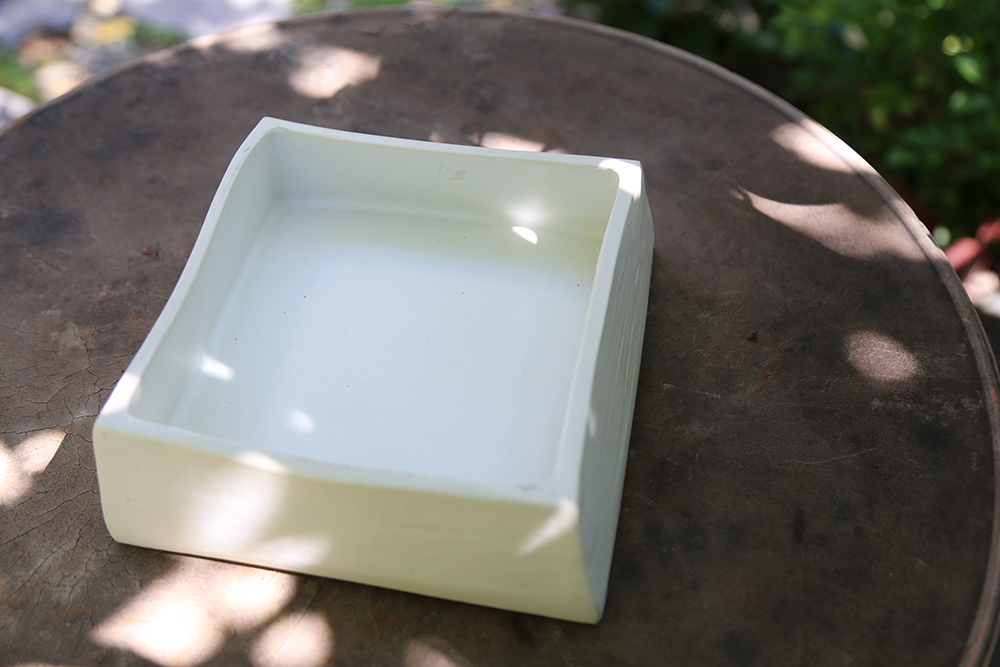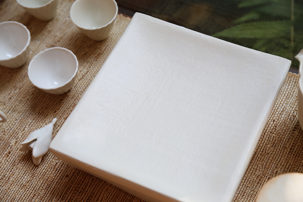 以陶砌成四方 質樸的白色釉 像塊紮實釉綿密的板豆腐