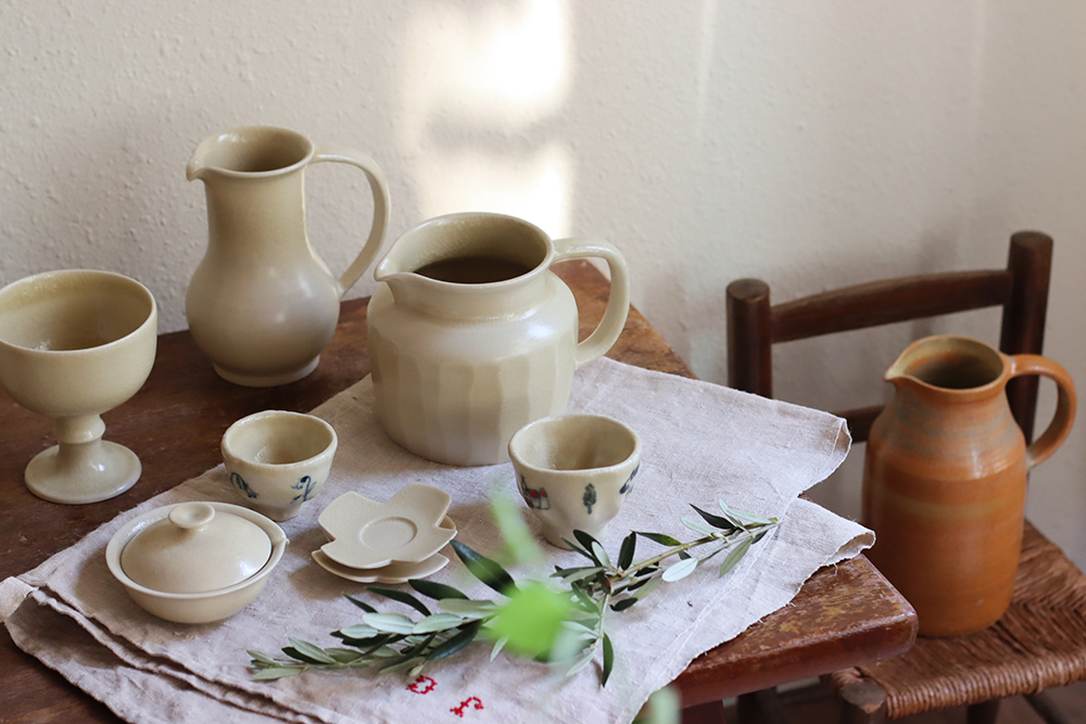 特別鍾愛18至19世紀法國南部的陶器,那些帶著古樸與純粹釉色的器皿,在陽光下泛著溫暖的光澤,彷彿凝結了時光的溫度。