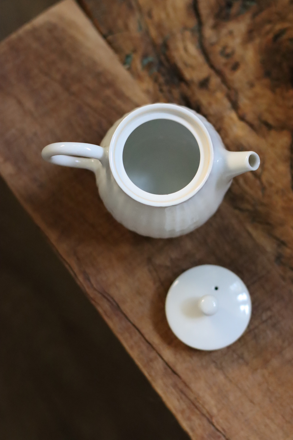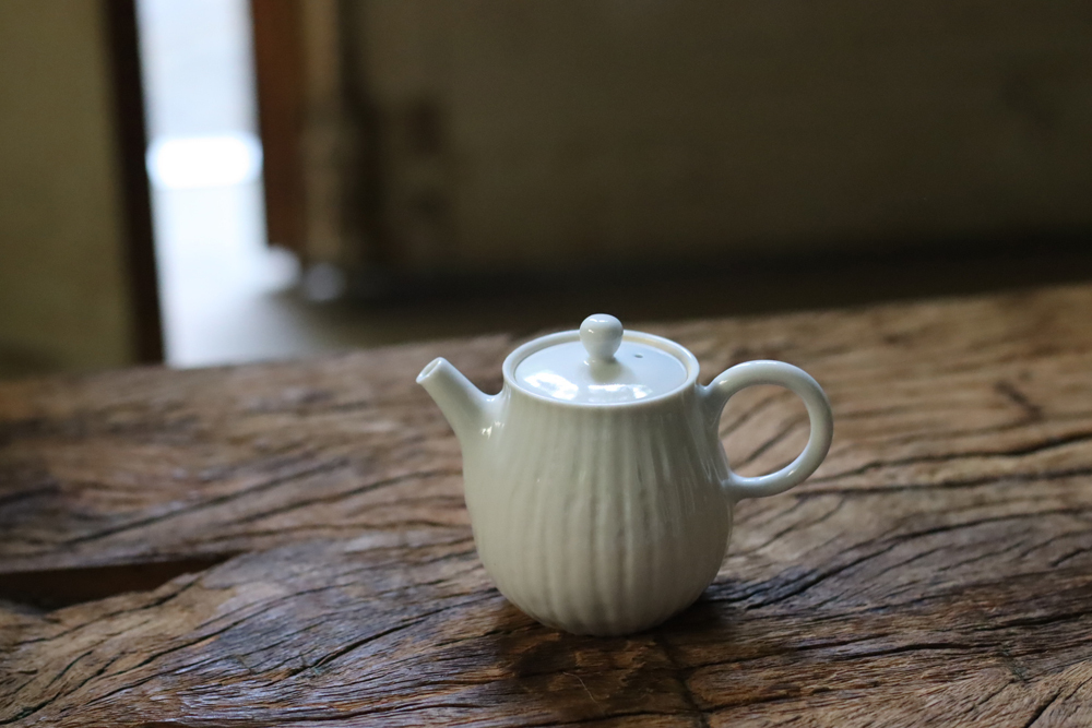 使用日本瓷土製作,土本身的密度極高傳熱快,燒製時能讓壺具呈現更細緻