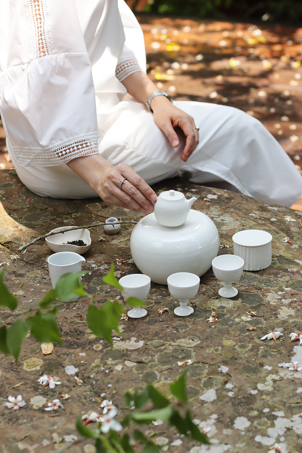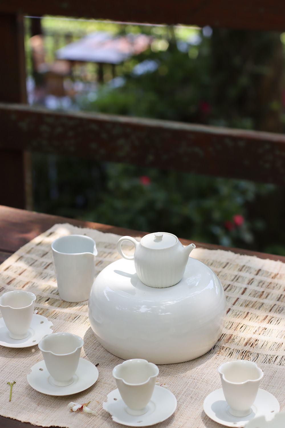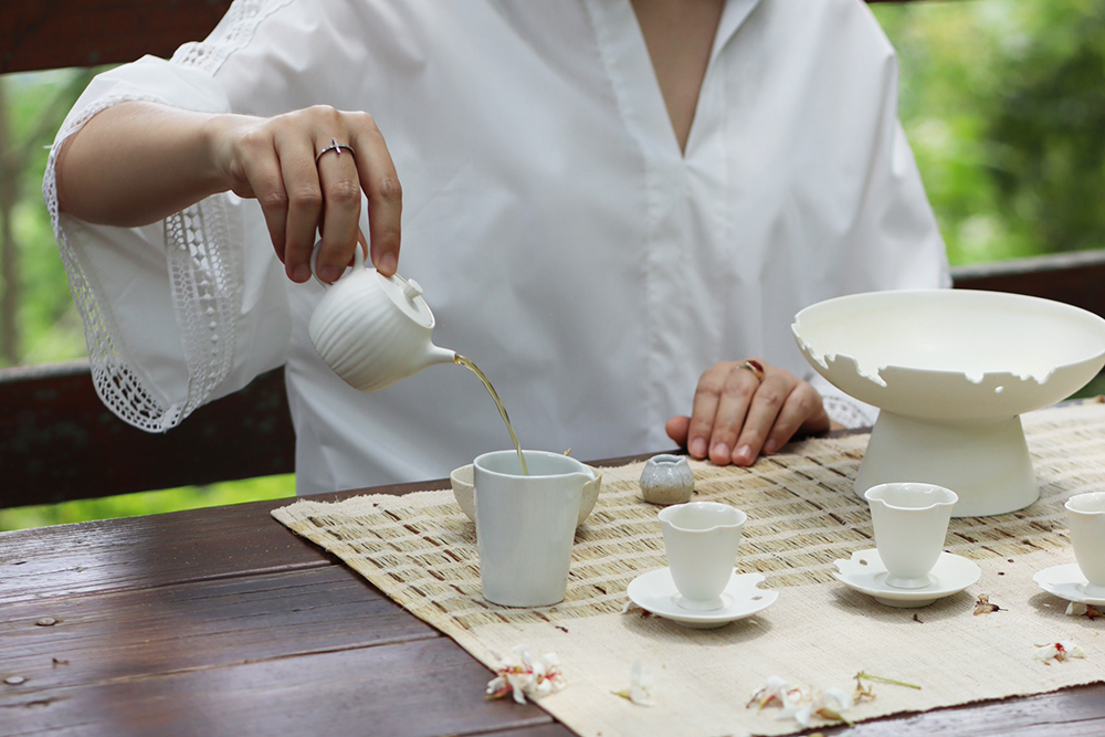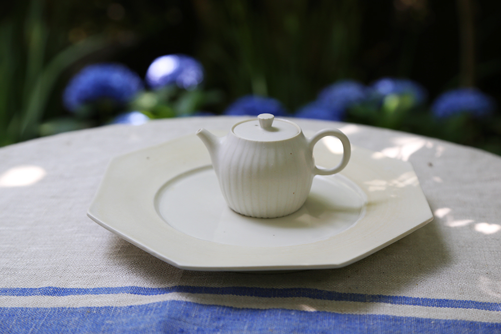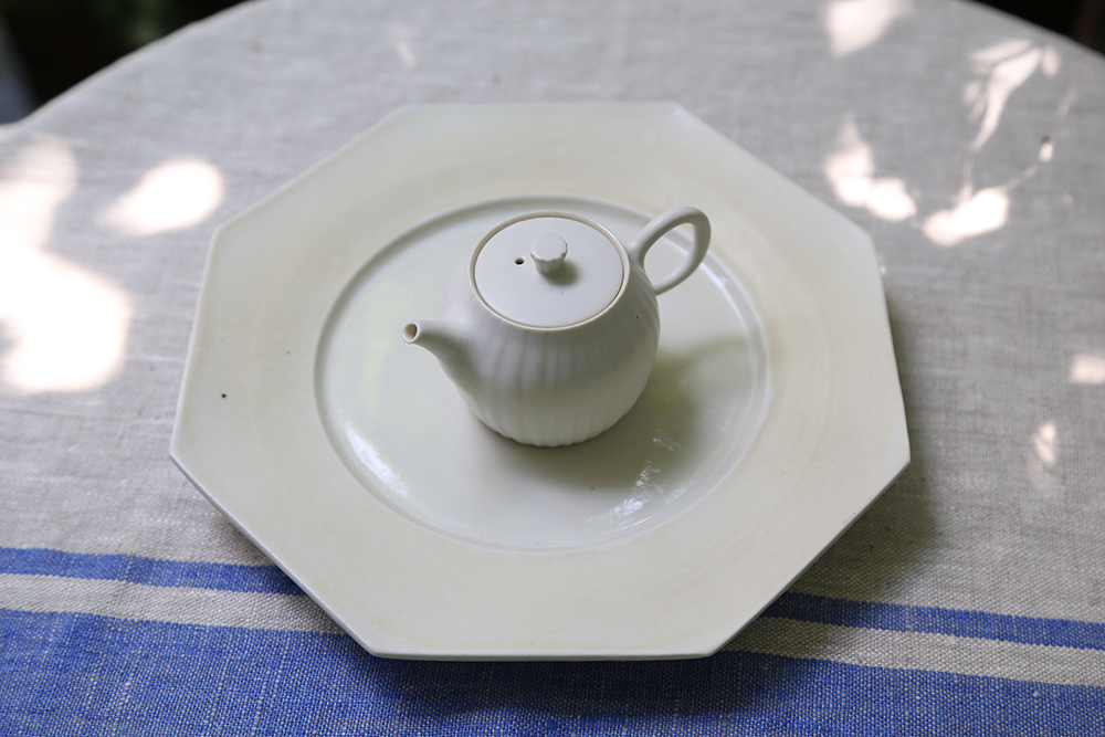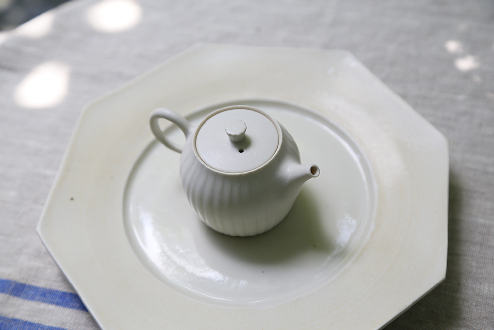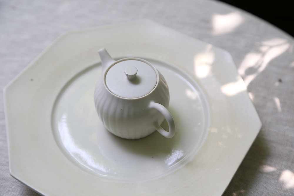 使用日本瓷土製作,土本身的密度極高傳熱快,燒製時能讓壺具呈現更細緻