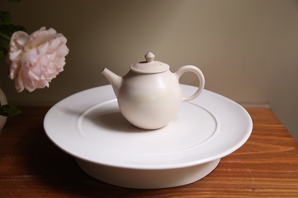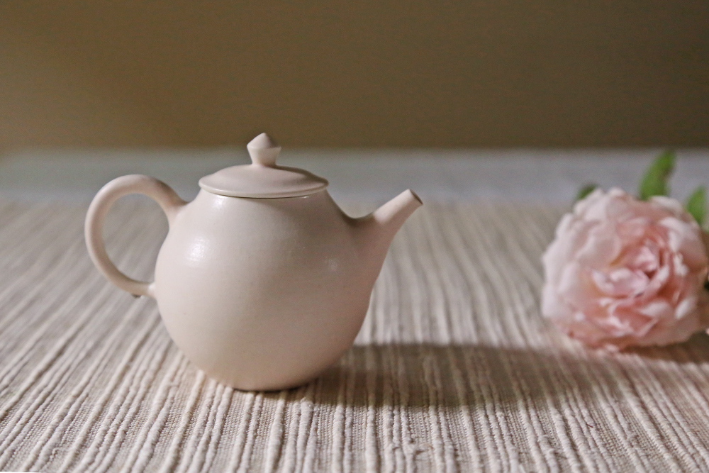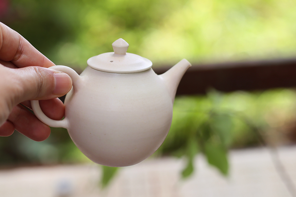 使用日本瓷土製作,土本身的密度極高傳熱快,燒製時能讓壺具呈現更細緻