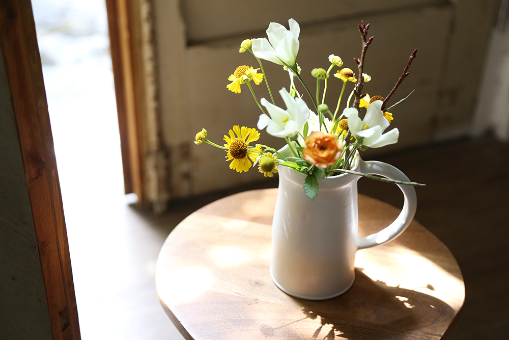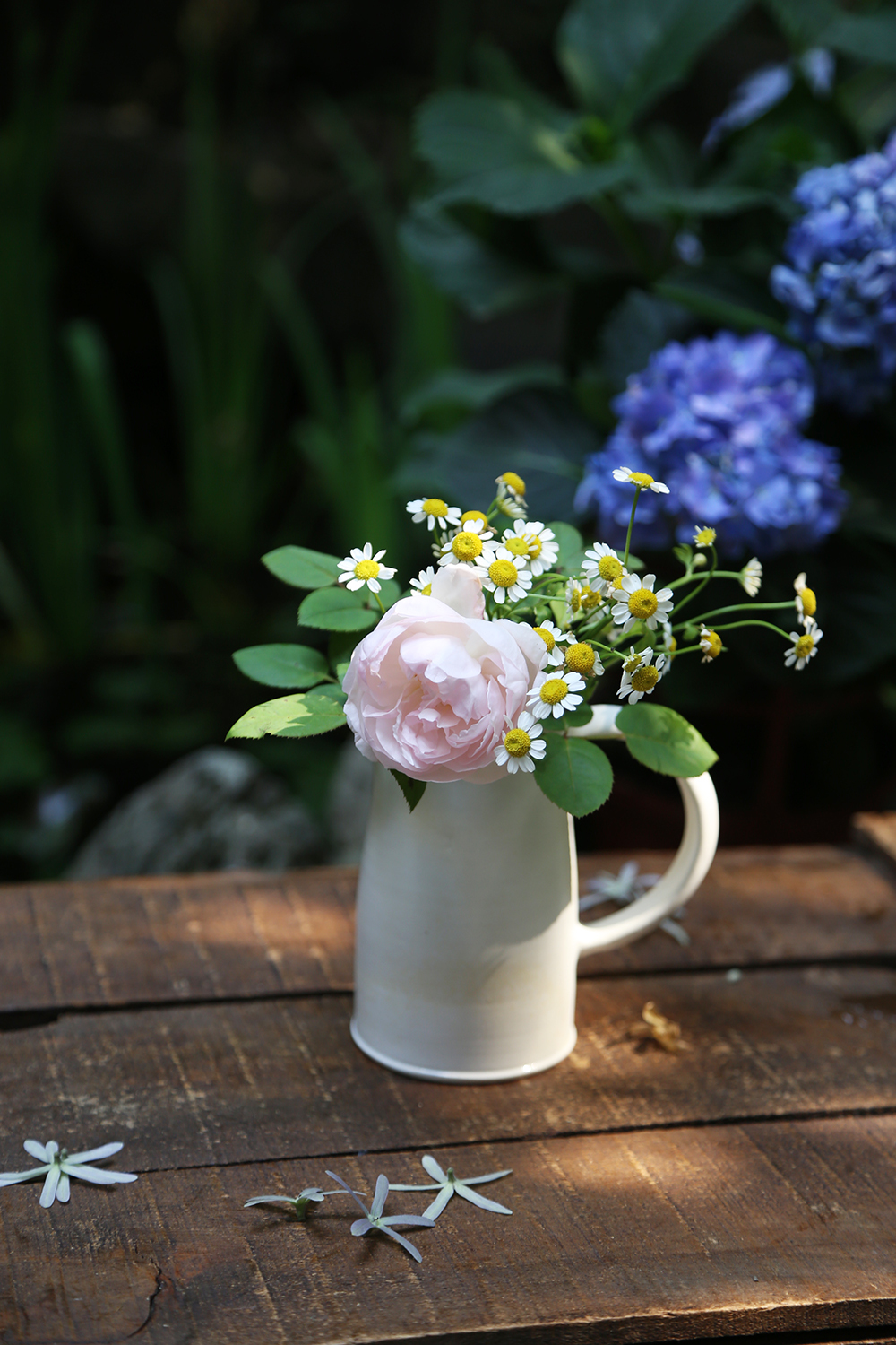 花園的粉色玫瑰 洋甘菊 狹葉薰衣草 隨手紮成一小把